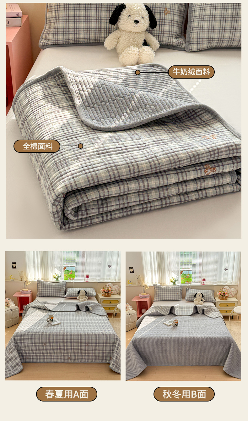 当前位置: 91家纺网 > 商品网购 > 床上用品 > 床盖 > 恒尚居 2026新款纯棉牛奶绒床盖双面两用夹棉床单床垫-秋冬款 四季通用 淑女格-灰【A纯棉-B牛奶绒】