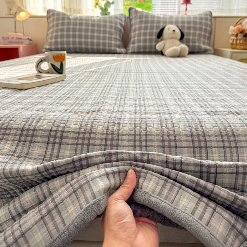 恒尚居 2026新款纯棉牛奶绒床盖双面两用夹棉床单床垫-秋冬款 四季通用 淑女格-灰【A纯棉-B牛奶绒】