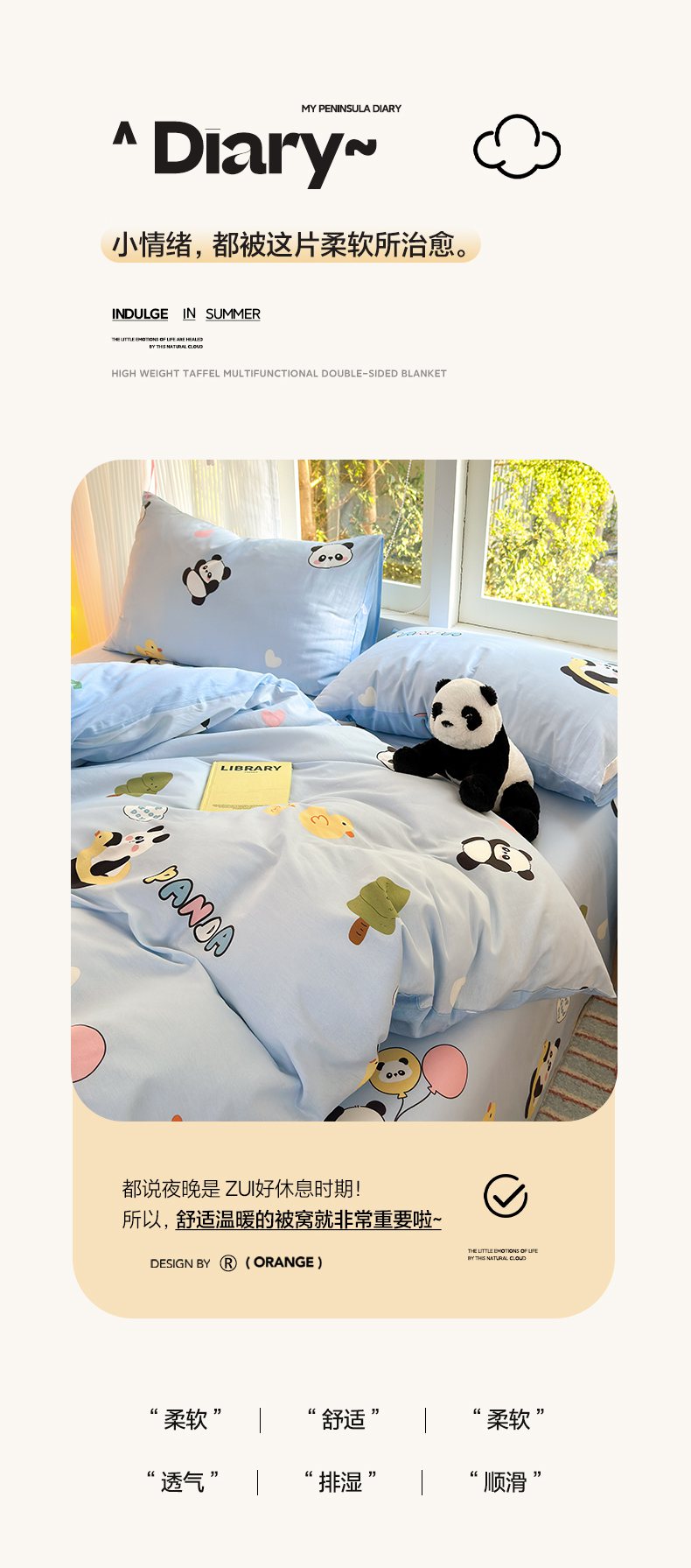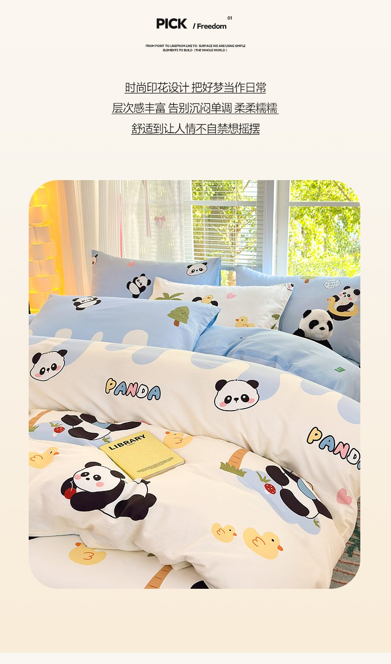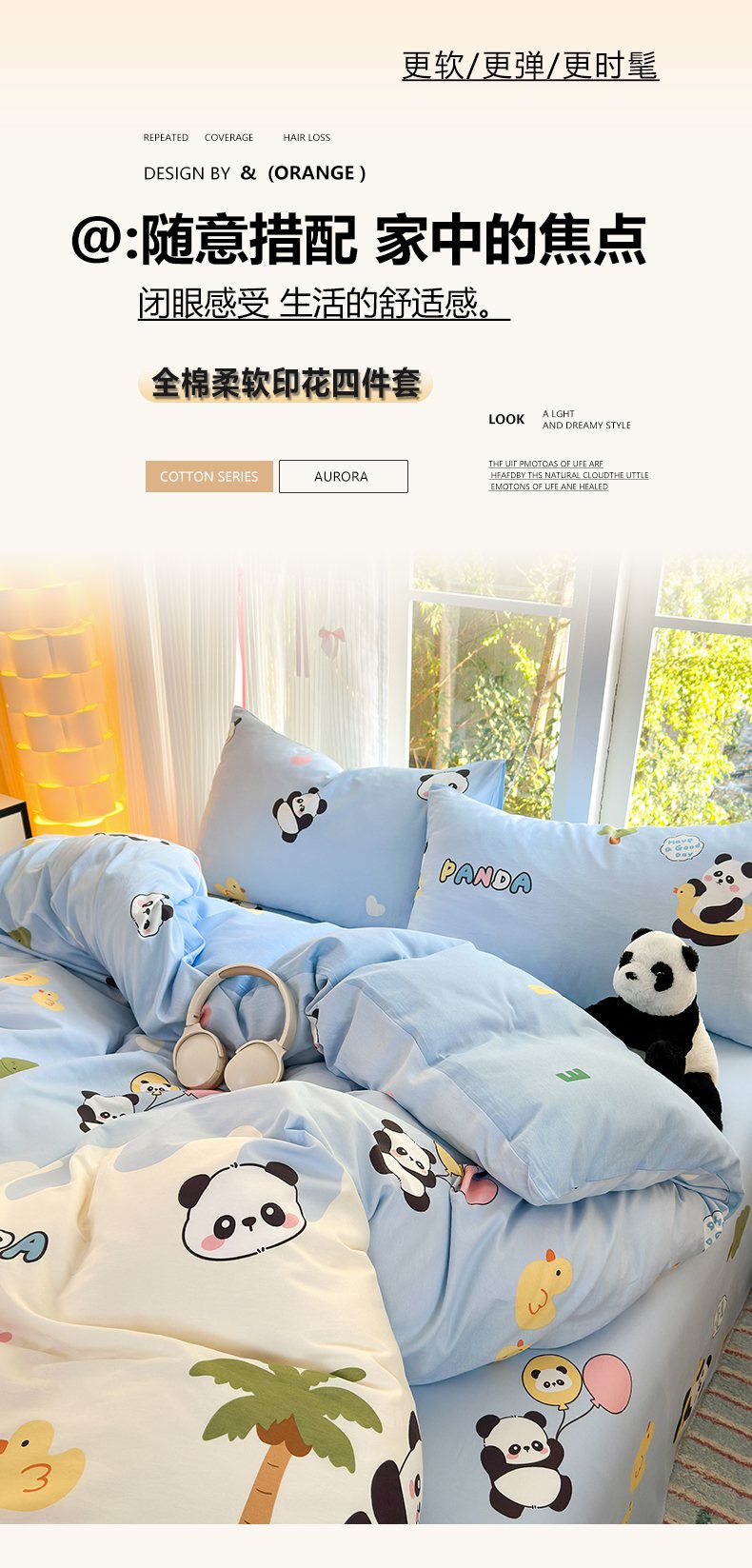 当前位置: 91家纺网 > 商品网购 > 床品套件 > 四件套 > 全棉普通四件套 > 清雅福 2025新款全棉柔软印花系列四件套 熊猫鸭鸭乐-兰