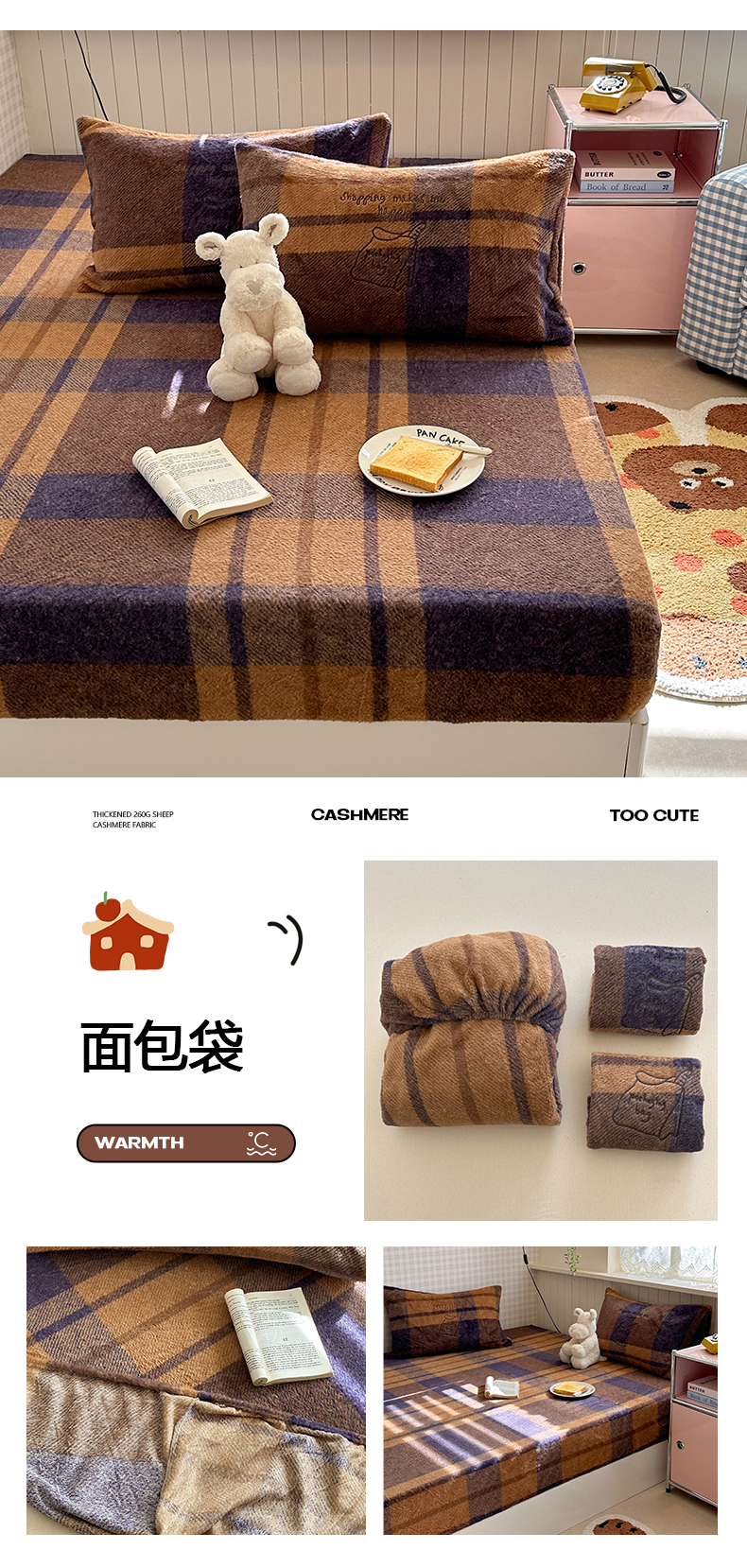 (总)暖生活 2026新款羊咩绒刺绣款床笠三件套,组合,小兔房子,电话机,面包袋,小饼干,小花瓶,小台灯