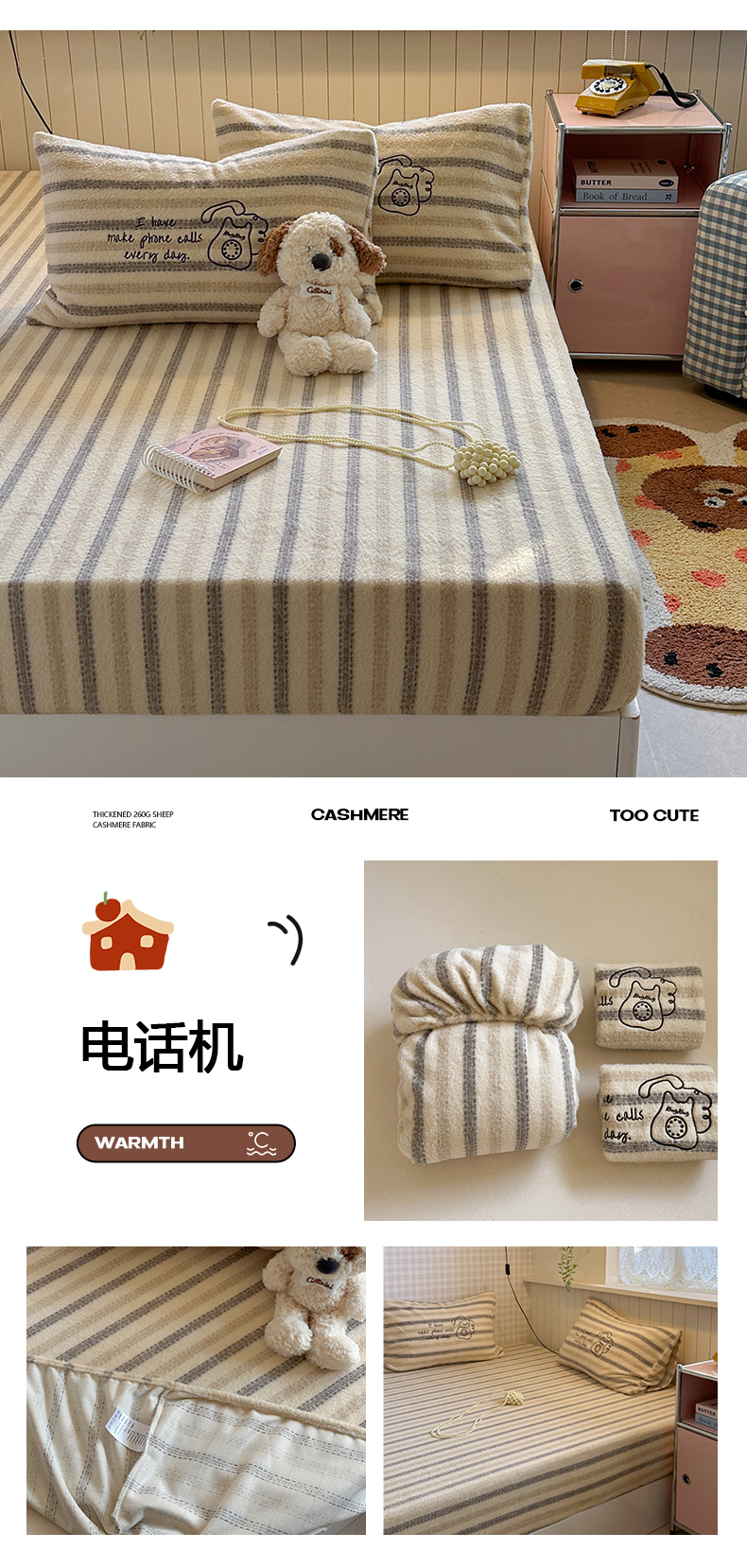 暖生活 2026新款羊咩绒刺绣款床笠三件套 电话机