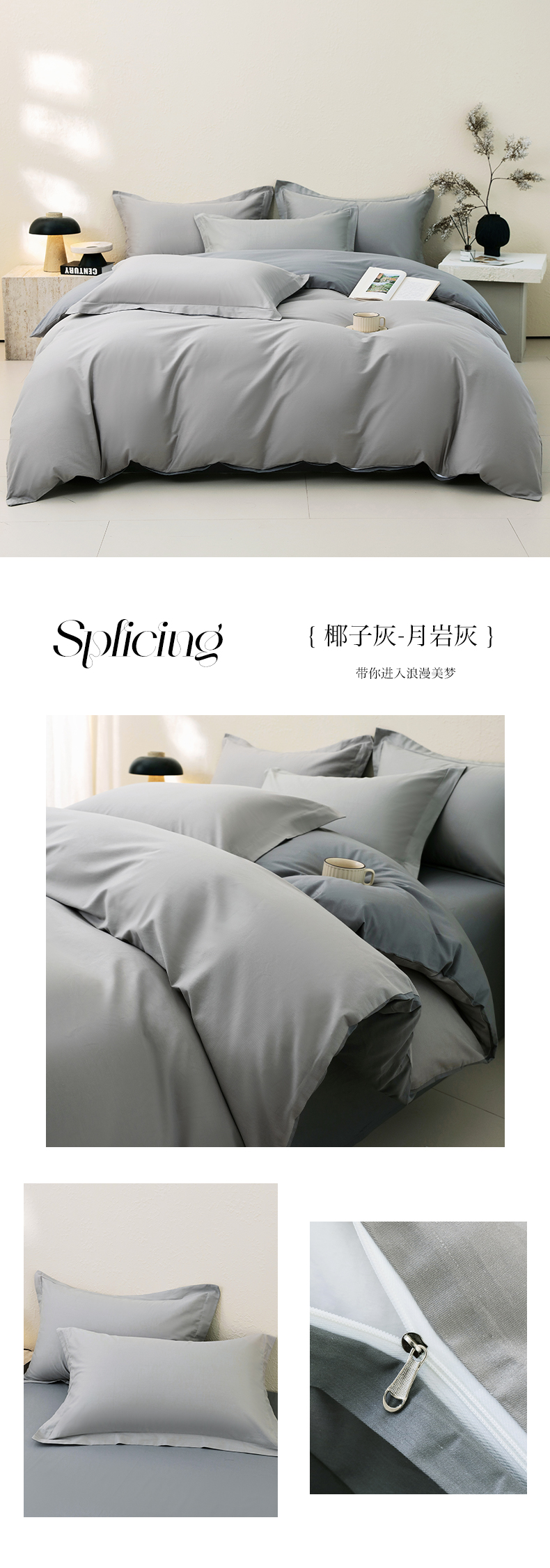 当前位置: 91家纺网 > 商品网购 > 床品套件 > 四件套 > 全棉普通四件套 > 小懒猪 2026新款13372A类双拼纯色全棉纯棉四件套 罗兰紫-椰子灰