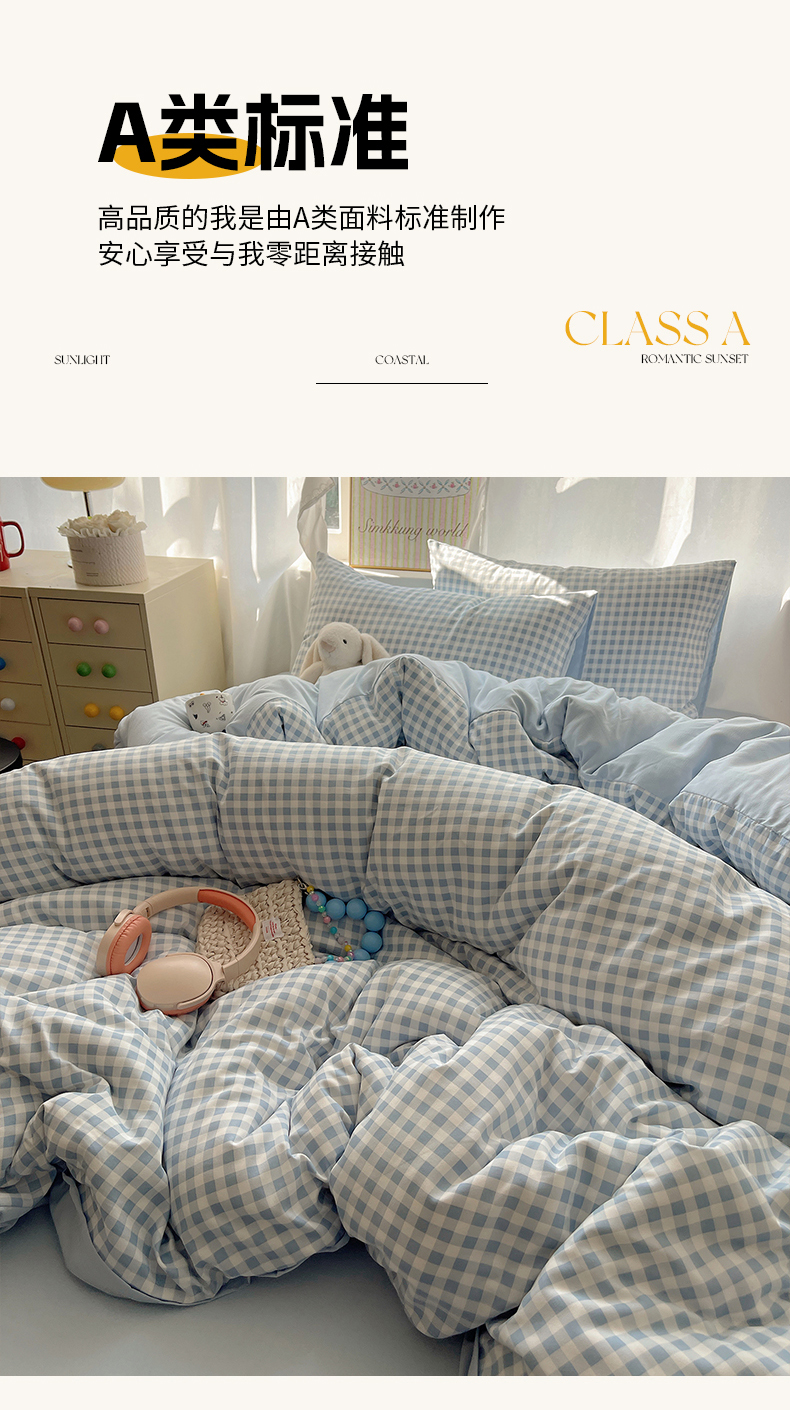 当前位置: 91家纺网 > 商品网购 > 床品套件 > 四件套 > 水洗棉四件套 > 沐芷 2026 A类105g水洗棉四件套超柔手感床上宿舍三件套床单被套 浅蓝格