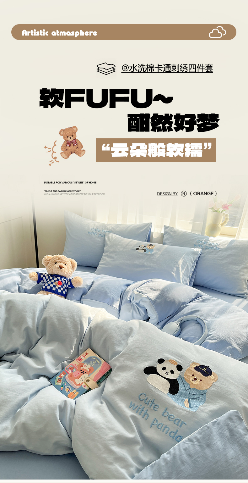当前位置: 91家纺网 > 商品网购 > 床品套件 > 四件套 > 水洗棉四件套 > 优承佳生活馆 2026新款软糯云朵棉刺绣三件套四件套单被套小熊系列-系列一 伙伴熊