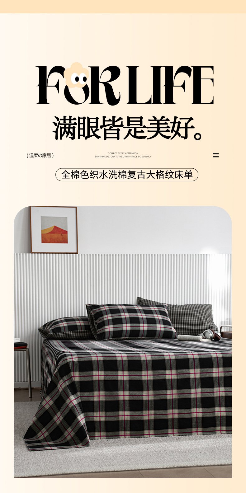 (总)启程家纺 2026新款纯棉水洗棉复古大格系列多规格纯棉床单,摩登大黑,摩登大咖,摩登大绿,苏格兰藏蓝大格,苏格兰红大格,苏格兰黄大格,苏格兰蓝大格