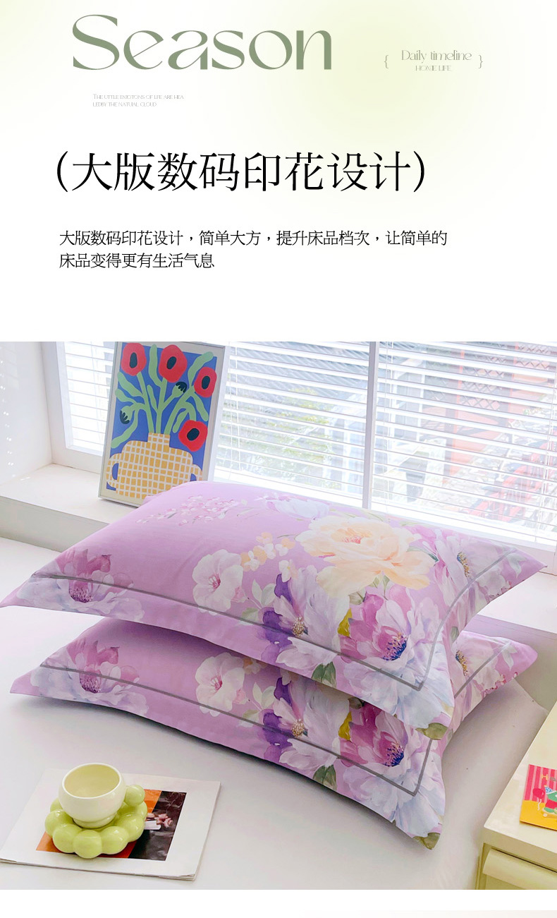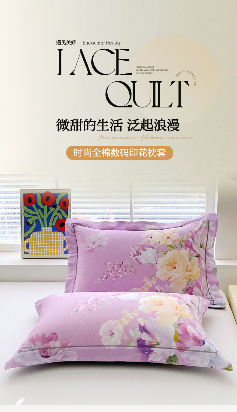 商品名称:焱博家纺 2026新款13376全棉纯棉大版数码印花单枕套枕套单件 甜美春日