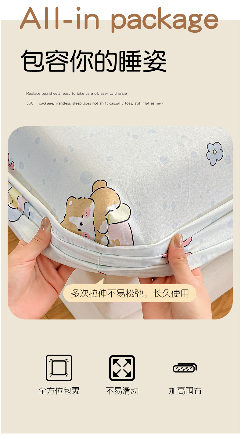 • 91家纺网 家纺一手货源 找家纺 (总)寻米 2026新款春夏全棉13070印花四件套单品系列-单床笠,爱你熊,班尼兔,草莓奶糖,春风里-湖蓝,春风里-杏色,繁花-粉,繁花-绿,花漾,花园凯蒂,花园小狗,花园小兔,黄油小熊,恐龙乐园,快乐小喵,快乐熊仔,理查的小伙伴,美式田园,萌兔花园,奶酪小狗,奇妙动物园,唐顿庄园,甜豆星球,甜梦小熊,香草泡芙,小狗没烦恼-兰,小熊饼干,小熊软糖,小熊温蒂,星星小熊,云朵小熊