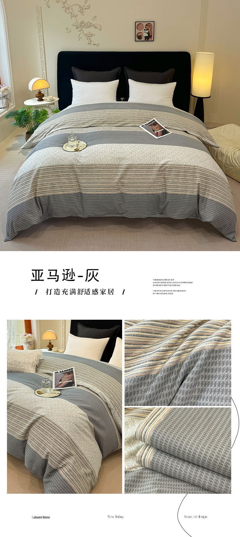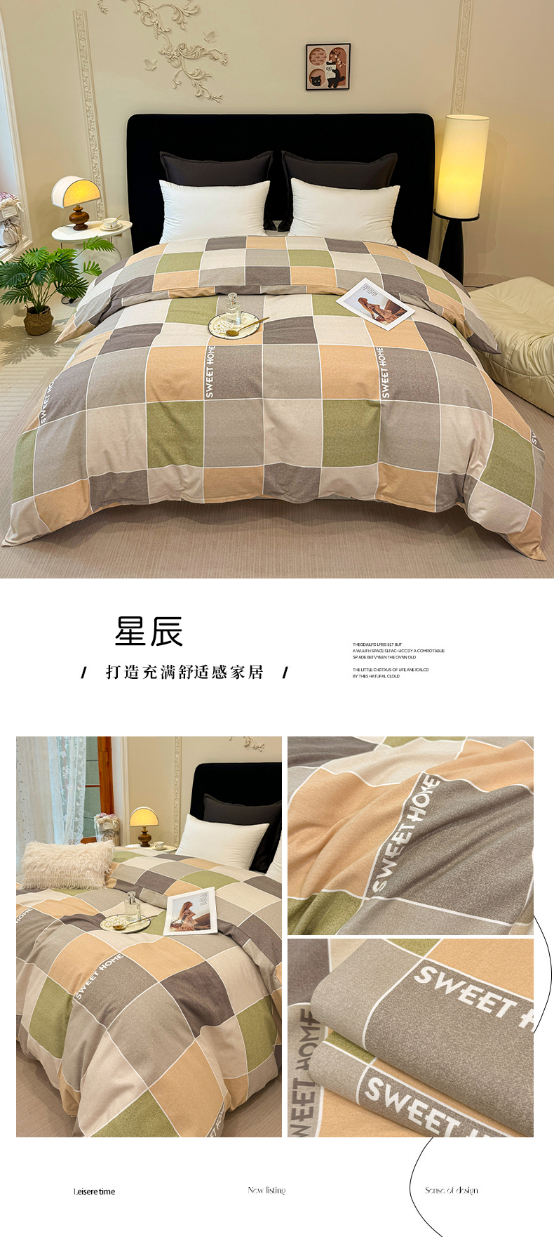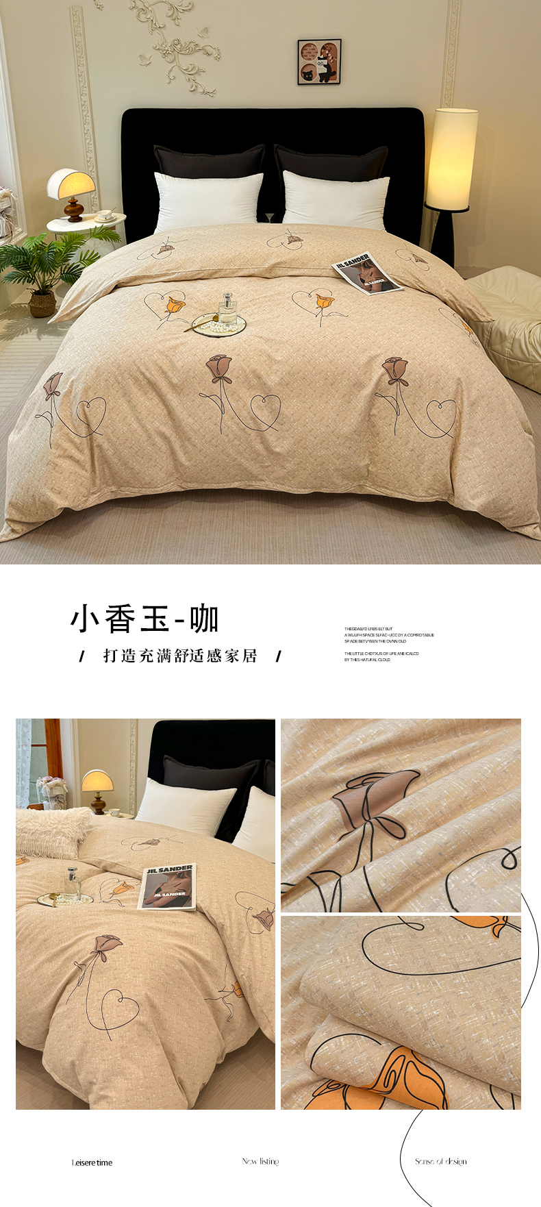壹贝家纺 2026新款全棉磨毛单品被套系列 记忆碎片-咖