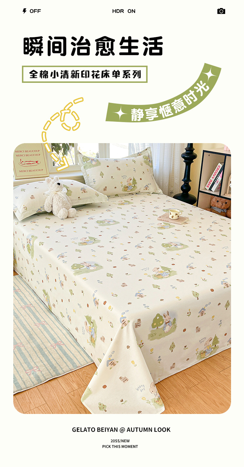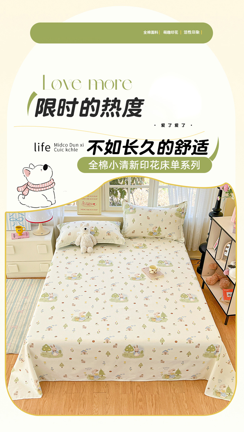 (总)铭成家纺 2026新款全棉印花小清新单床单(提供买家秀),兔子探险,贝母星空,布偶日记,格格兔宝,海风苏打,花恋,花园宝贝,欢乐聚会,橘子格,卡其小熊,卡萨诺,蓝沫,恋蝶花香,卢卡斯,暮洛星,纳瑞小狗,柠檬心愿,泡泡双星,青涩草莓,诗情画意,糖果萌物园,特洛伊木马,甜甜圈小熊,甜心伙伴,心软曲奇,杏曳,徐徐花开,摇滚小狗,月球摘星,珍妮小兔