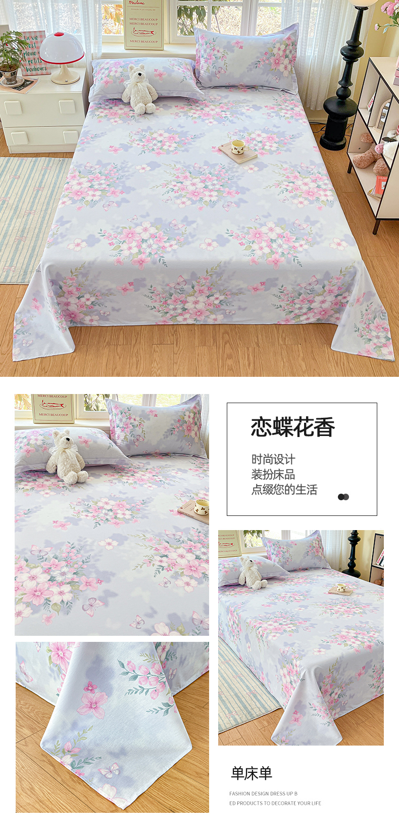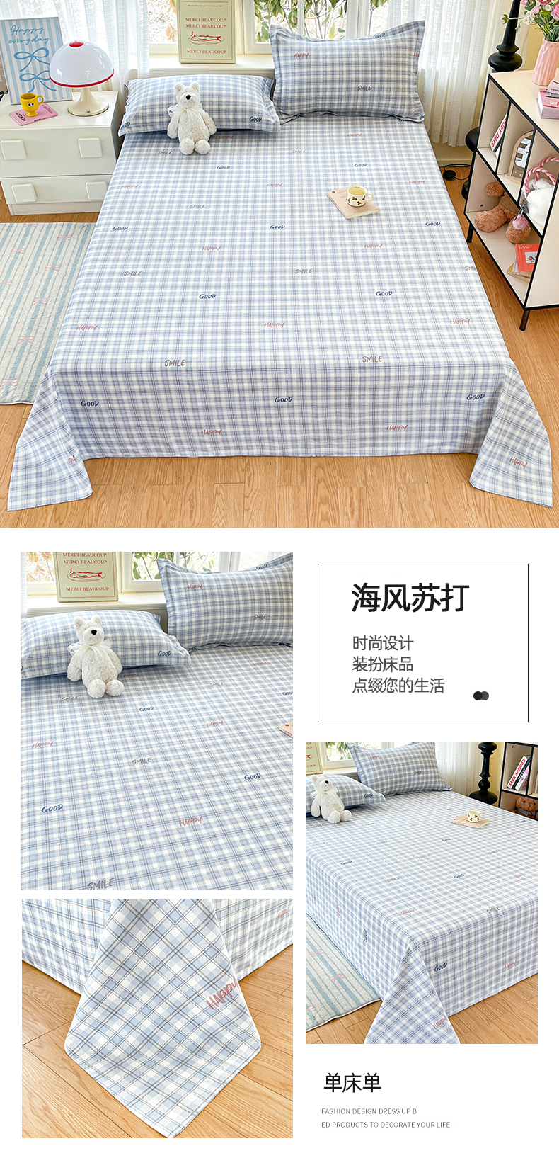 • 91家纺网 家纺一手货源 找家纺 铭成家纺 2026新款全棉印花小清新单床单(提供买家秀) 欢乐聚会