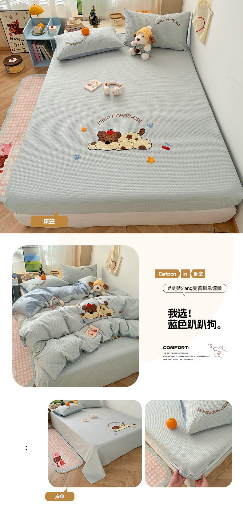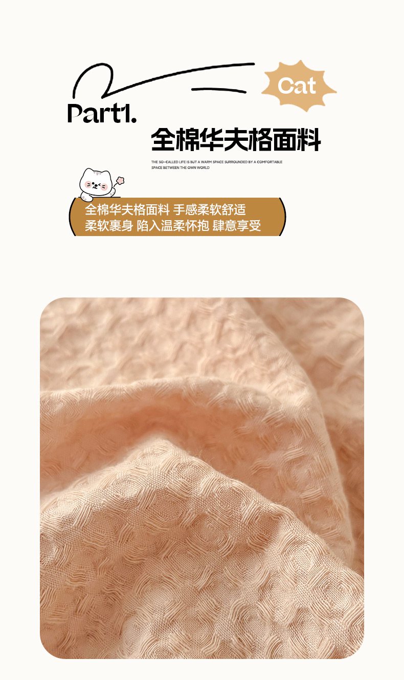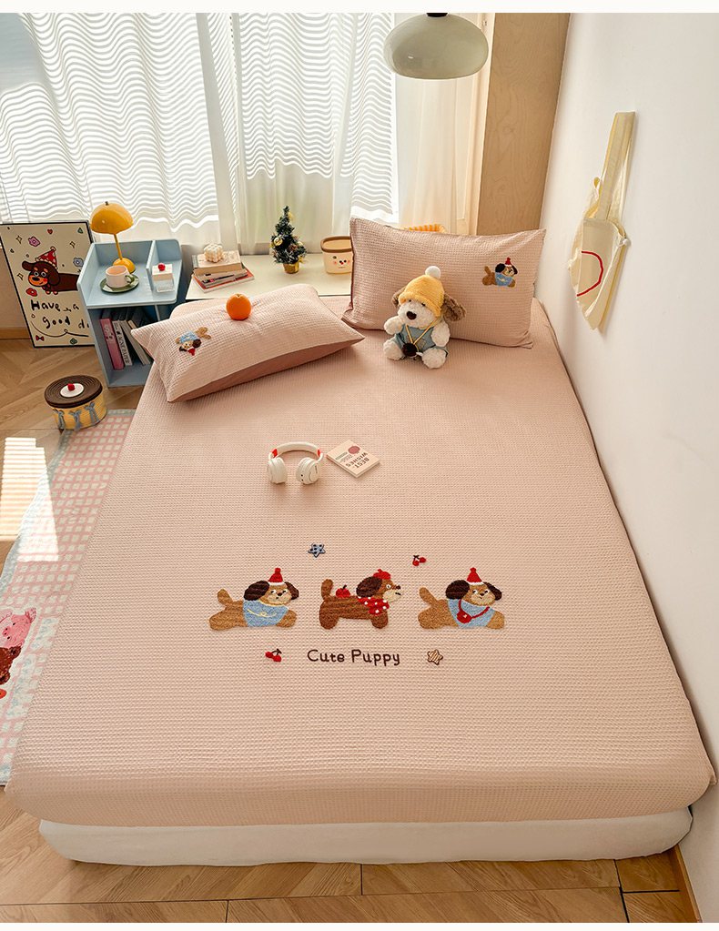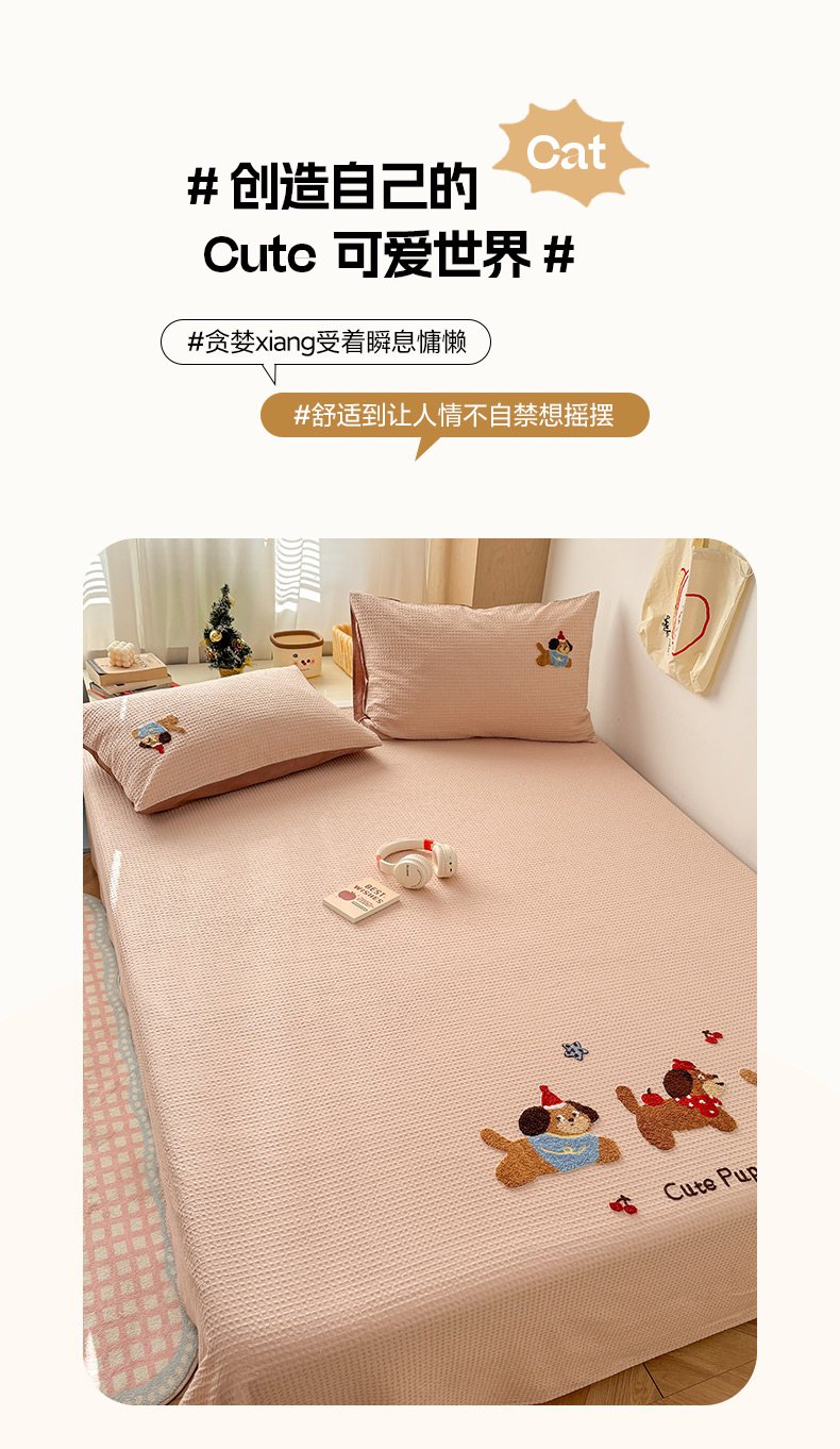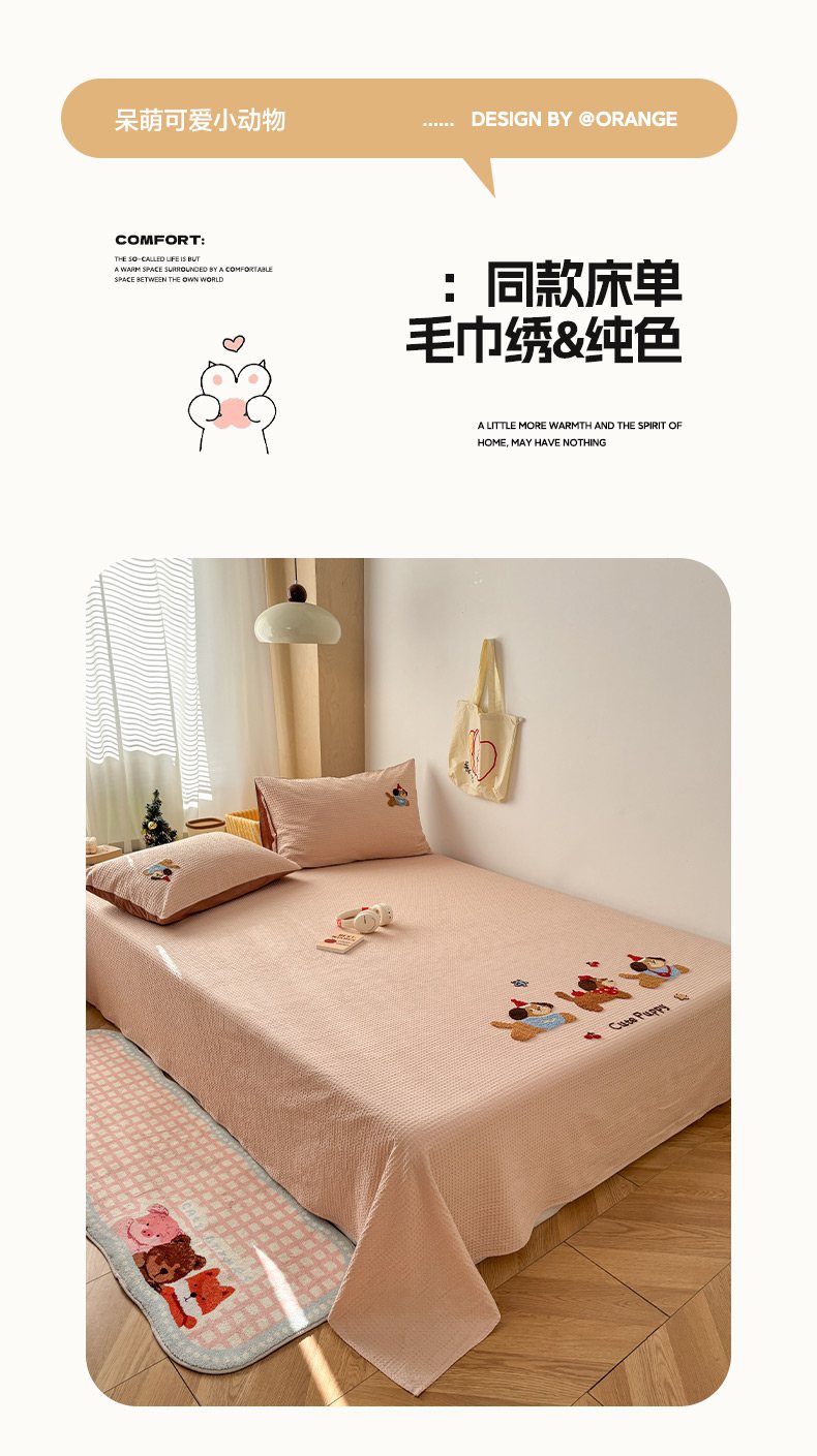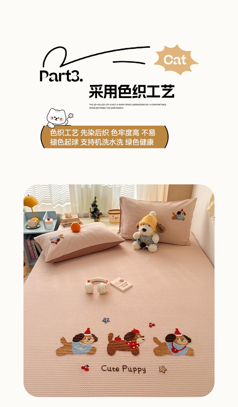 当前位置: 91家纺网 > 商品网购 > 床品套件 > 四件套 > 全棉普通四件套 > 雅居纺家纺 2026新款全棉华夫格毛巾绣单品系列 米驼腊肠狗