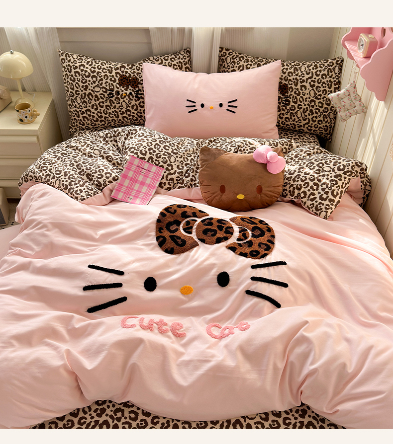 当前位置: 91家纺网 > 商品网购 > 床品套件 > 四件套 > 毛巾绣四件套 > 优选良品 2026新款网红热款豹纹kitty毛巾绣床上四件套学生三件套 豹纹kitty-奶咖