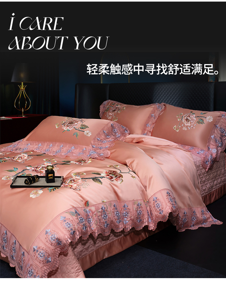 OL家纺 2026新款高精密苏绣蕾丝四件套 金玉满堂-玉色