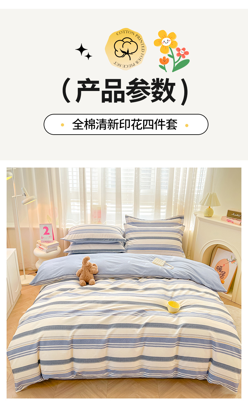 当前位置: 91家纺网 > 商品网购 > 床品套件 > 四件套 > 全棉普通四件套 > 珂博家纺 2026新款12868全棉纯棉小清新印花四件套 潮流前线