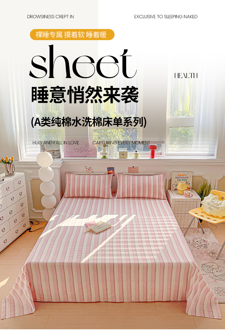 当前位置: 91家纺网 > 商品网购 > 床上用品 > 床单 > 柠萌家居 2026新款全棉A类色织水洗棉母婴级简约格子三件套床单 倾城-粉