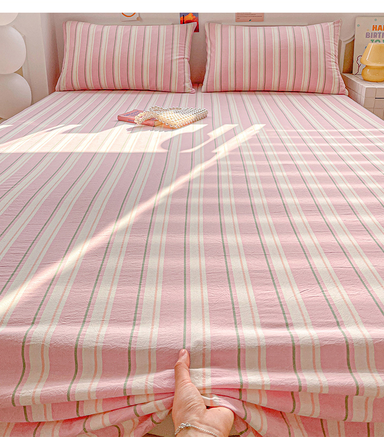 柠萌家居 2026新款全棉A类色织水洗棉母婴级简约格子三件套床单 倾城-粉