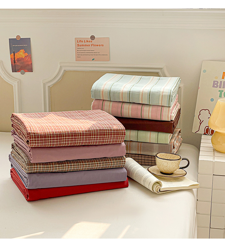 (总)柠萌家居 2026新款色织水洗棉四件套单被套,粉极细条,粉紫条,黄咖条,灰极细条,蓝咖条,绿极细条,绿紫条,米极细条,驼红条