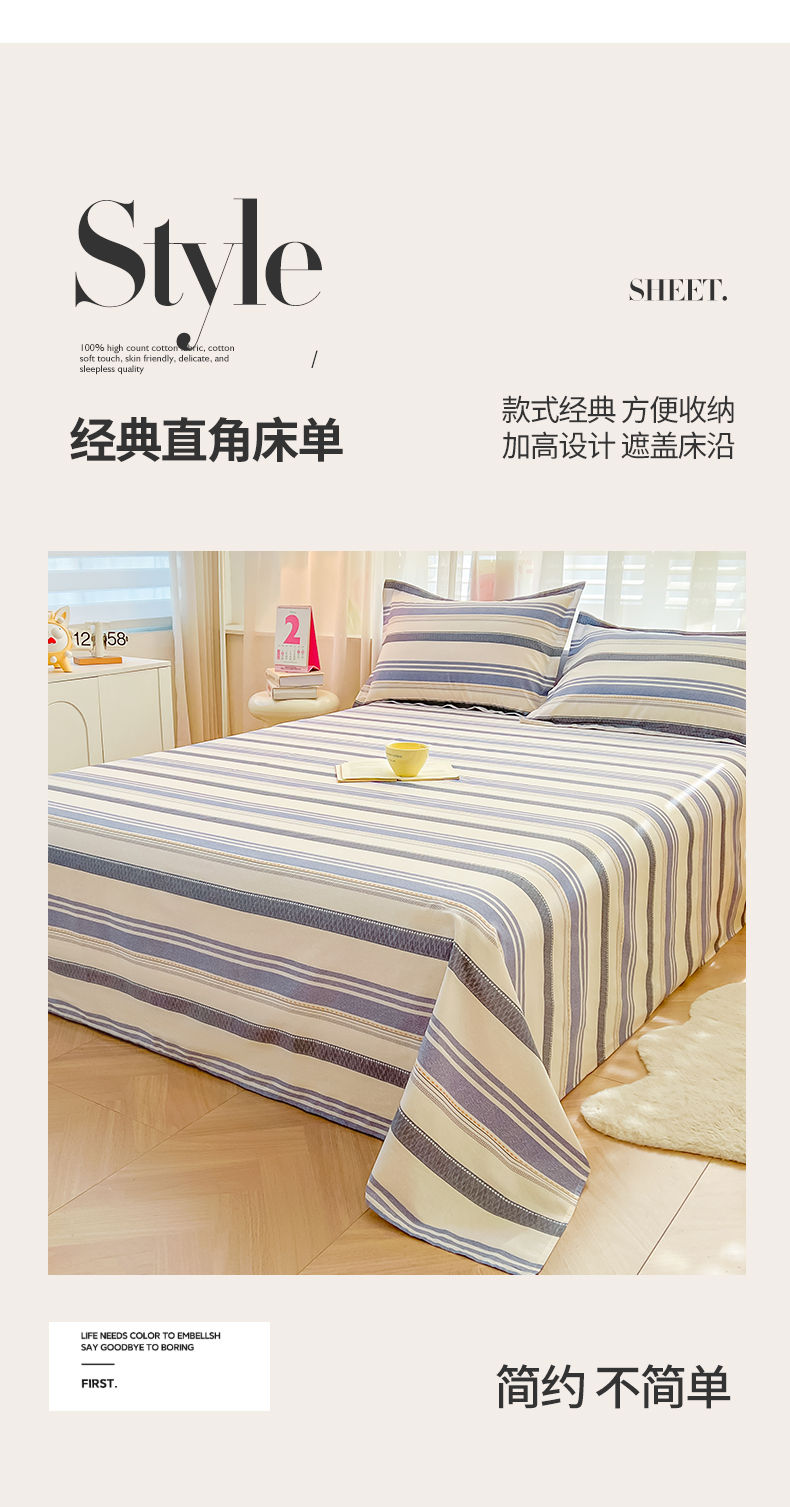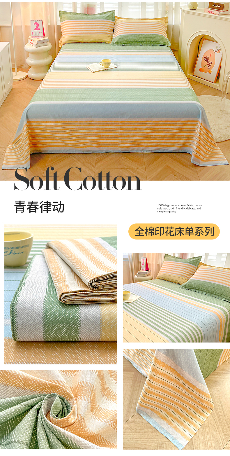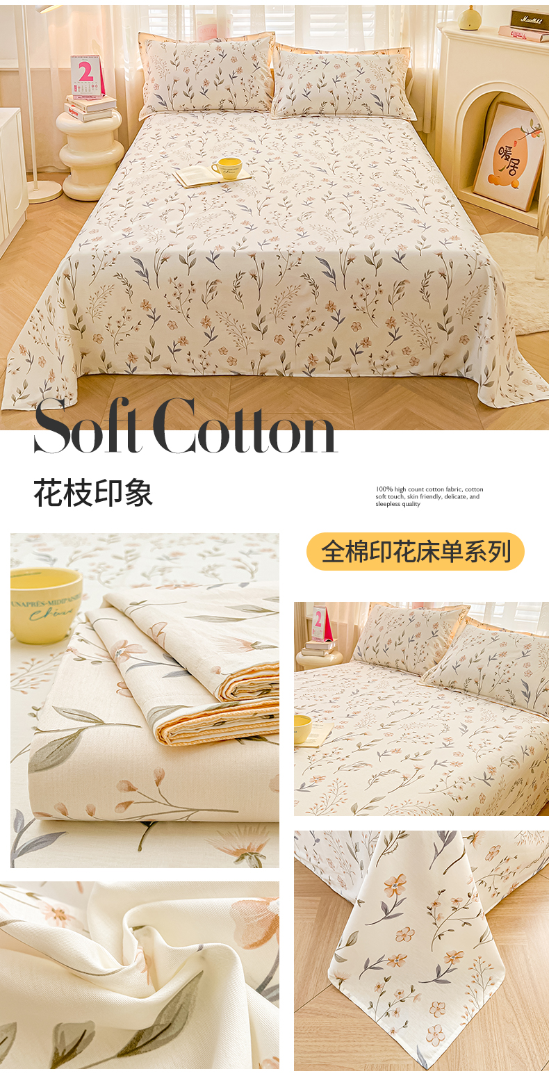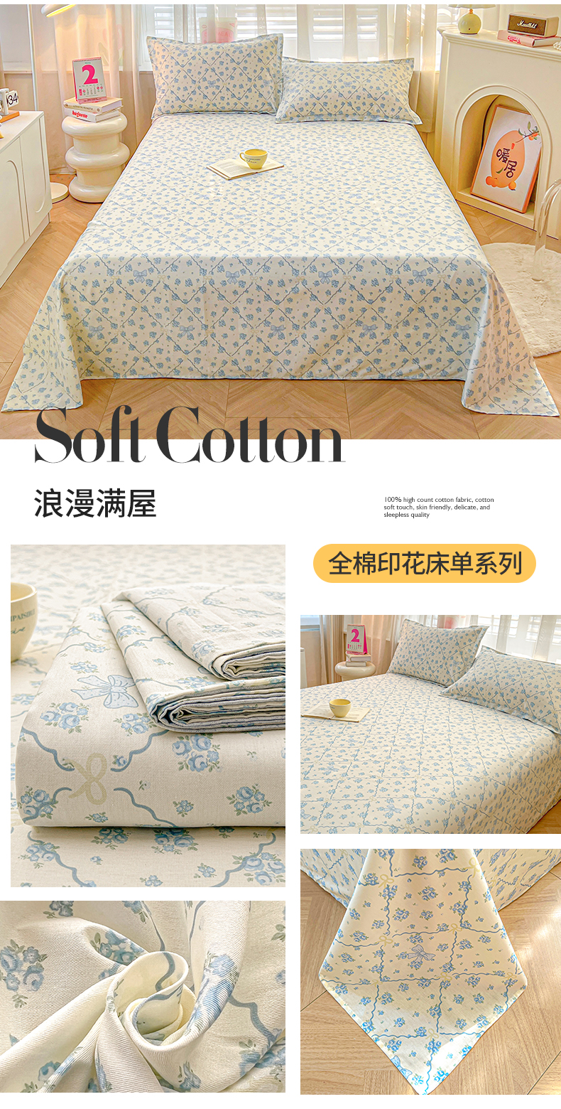 商品名称:(总)珂博家纺 2026新款12868全棉纯棉小清新印花系列单床单床笠