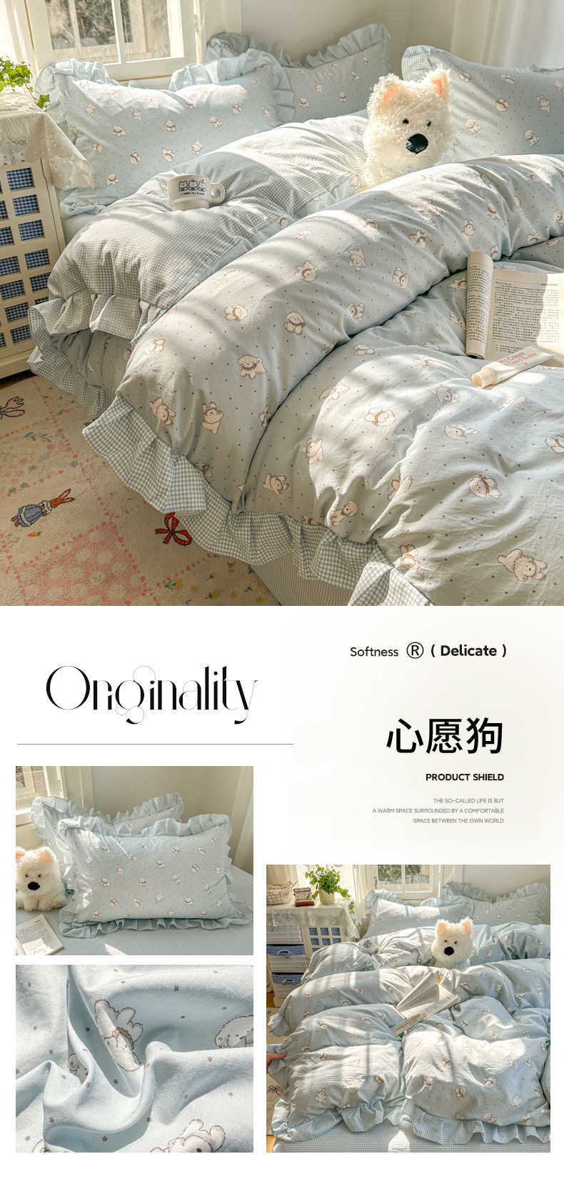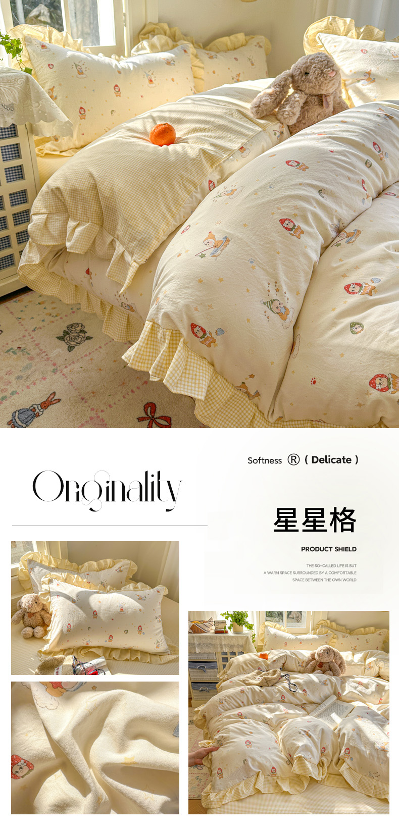 (总)柒月家居 2025新款赫本花边款200克牛奶绒套件四件套,赫本花边-花影,赫本花边-爱心,赫本花边-波点,赫本花边-丛林小兔,赫本花边-黑花朵朵,赫本花边-肌理碟影