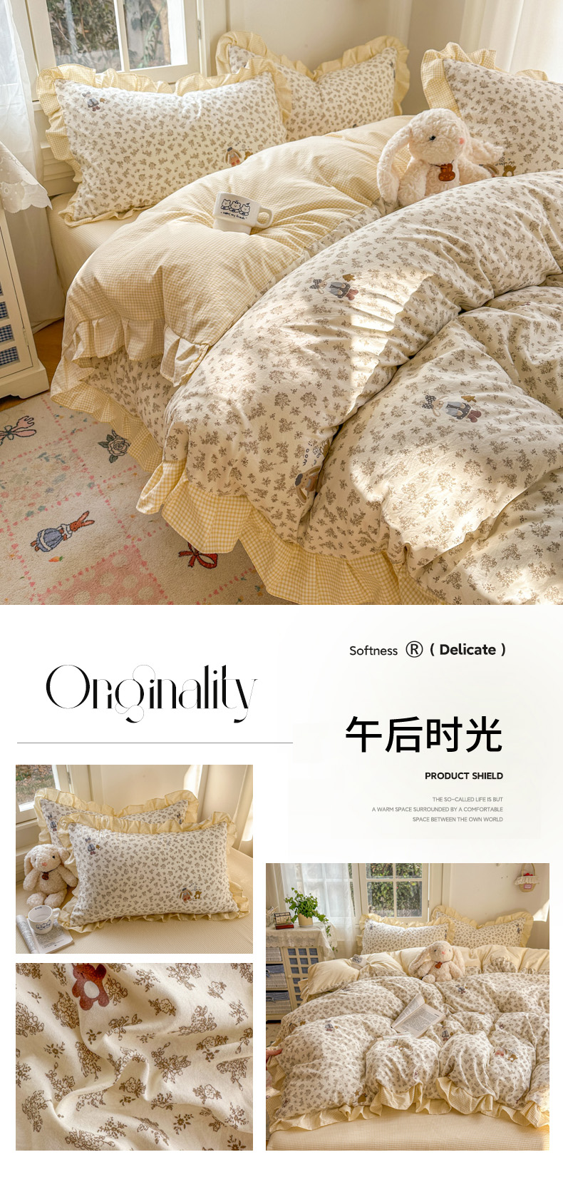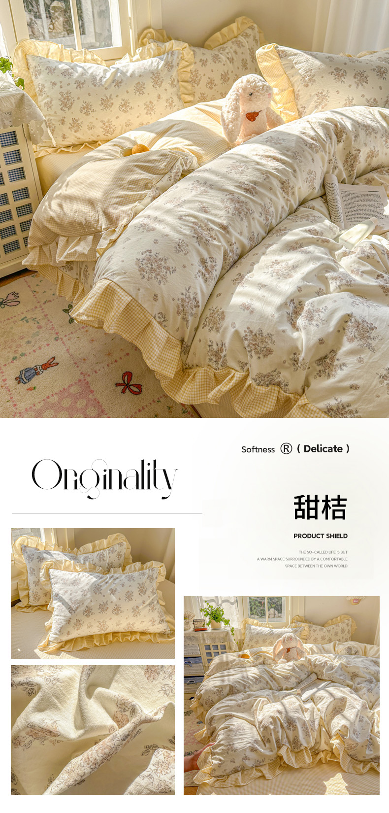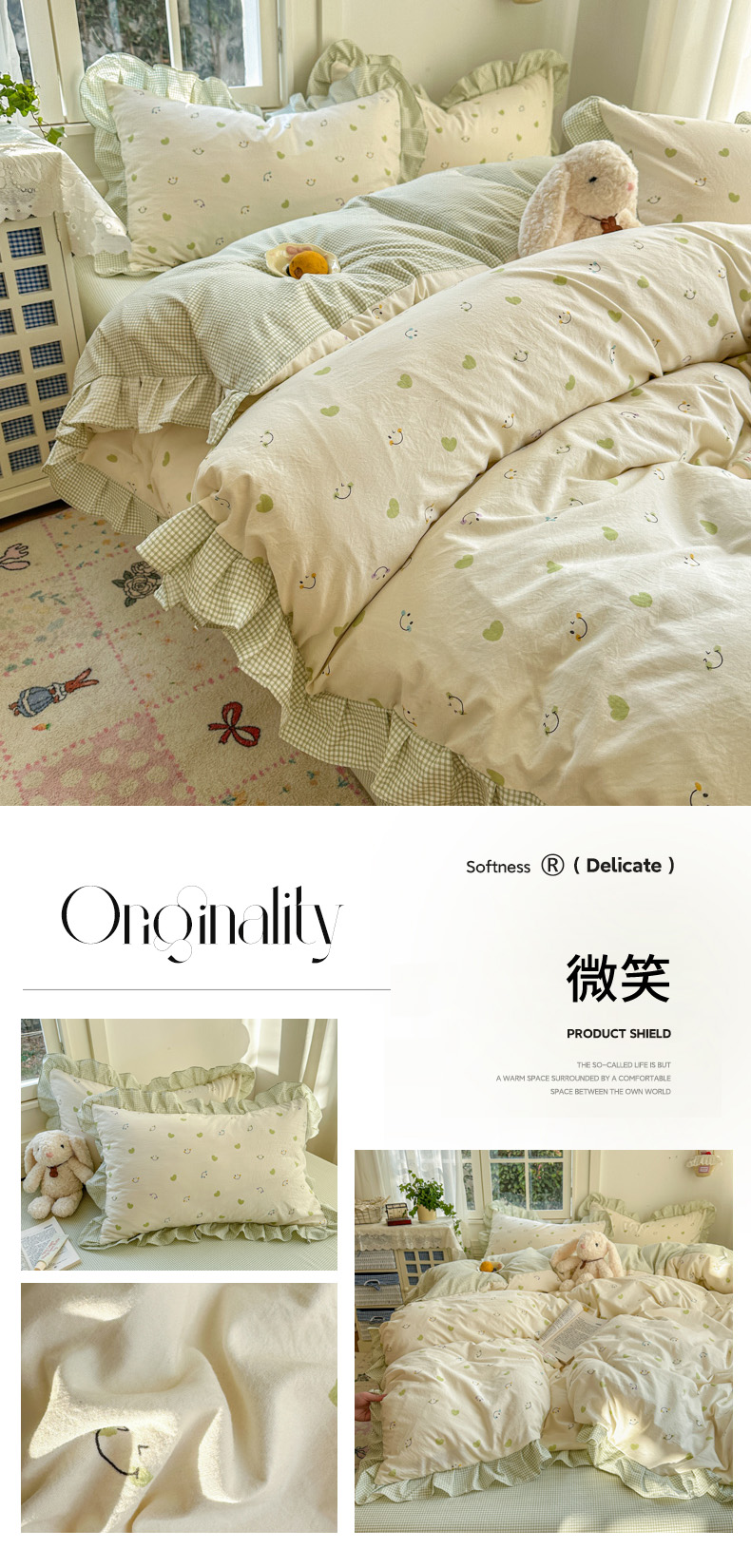 商品名称:(总)柒月家居 2026新款韩系仿棉小格花边四件套