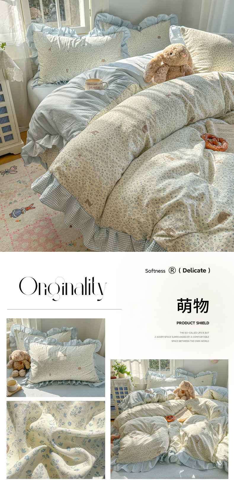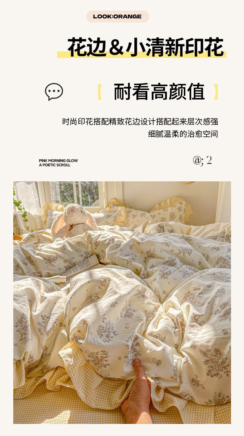 (总)柒月家居 2026新款韩系仿棉小格花边四件套