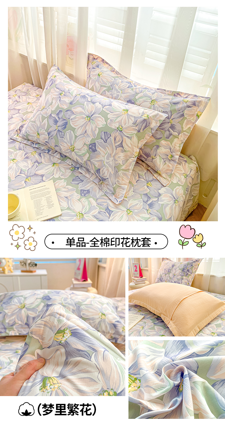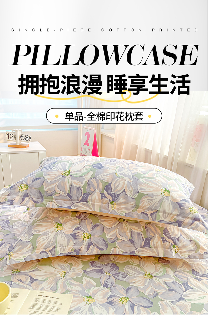 珂博家纺 2026新款12868全棉纯棉小清新印花系列枕套单件单枕套 梦里繁花