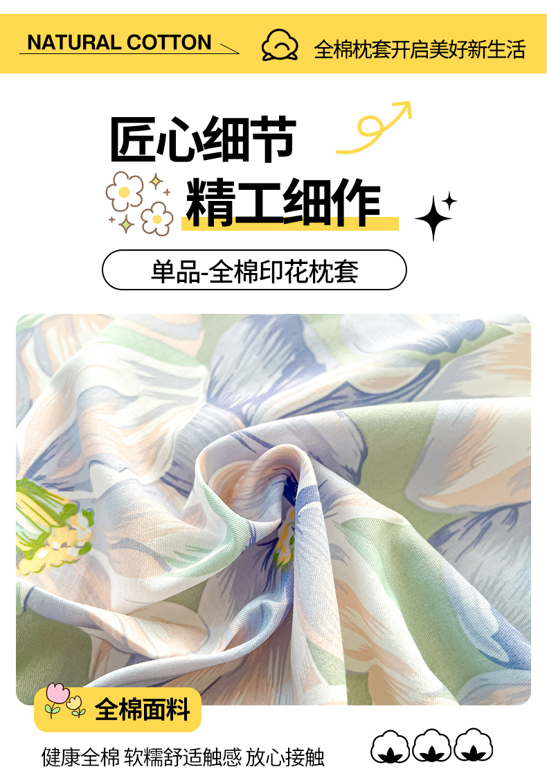商品名称:珂博家纺 2026新款12868全棉纯棉小清新印花系列枕套单件单枕套 梦里繁花