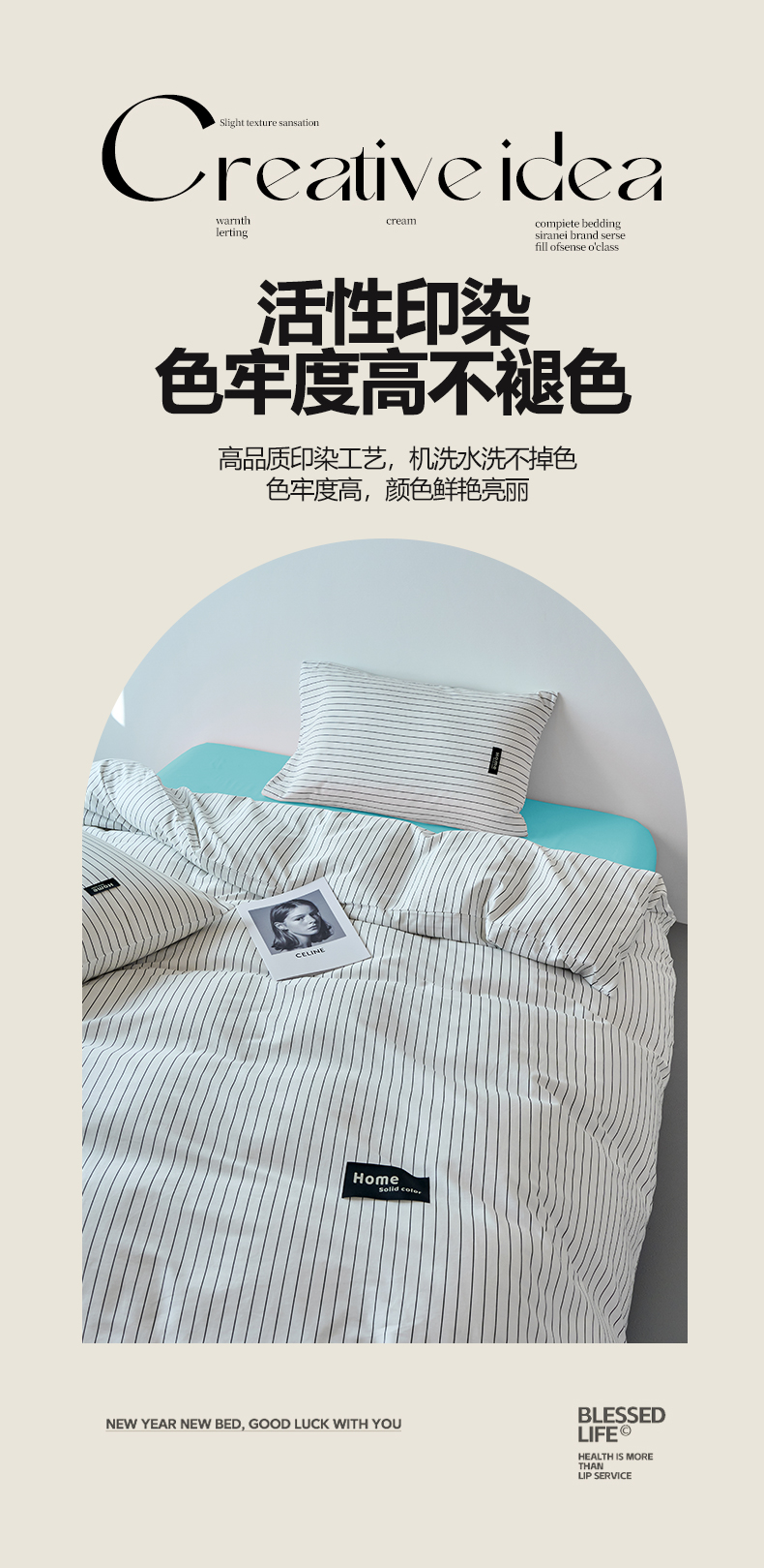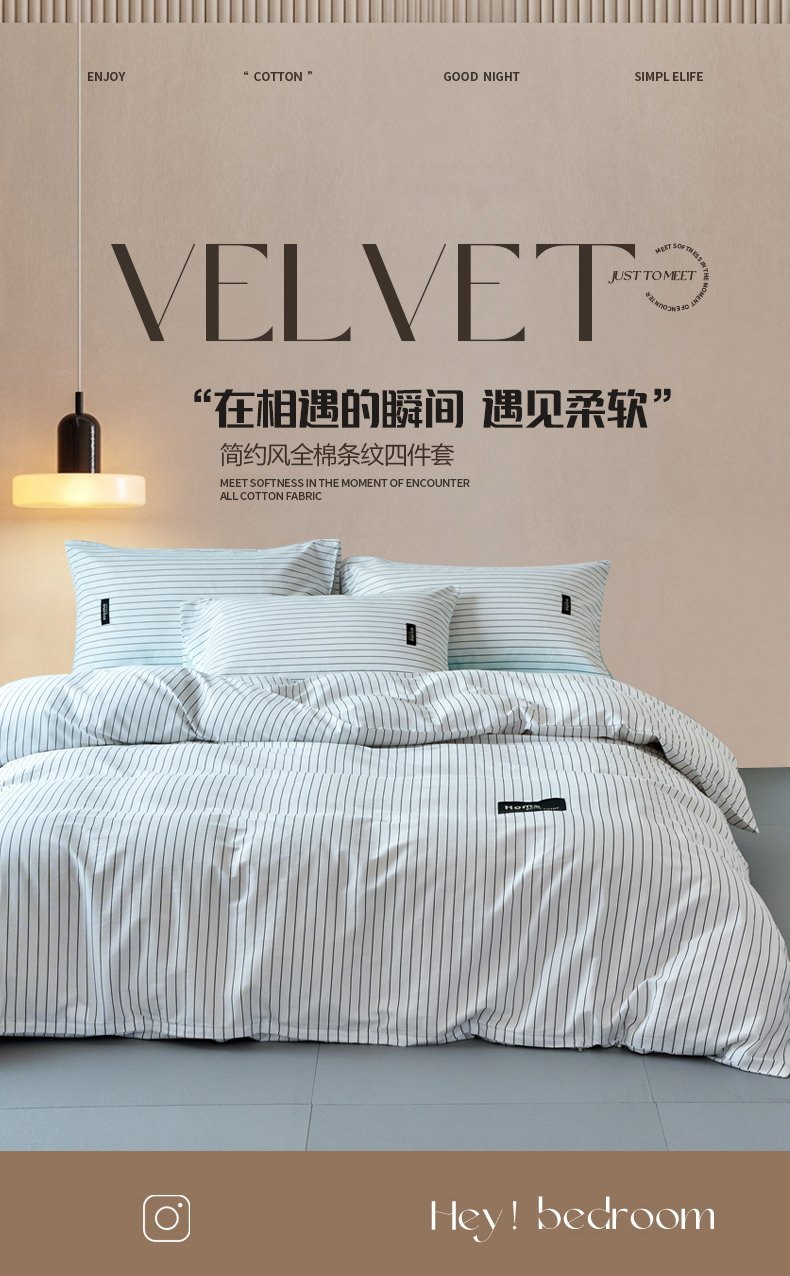 当前位置: 91家纺网 > 商品网购 > 床品套件 > 四件套 > 全棉普通四件套 > 兰紫橙家纺 2026新款简约风全棉条纹四件套 北海道
