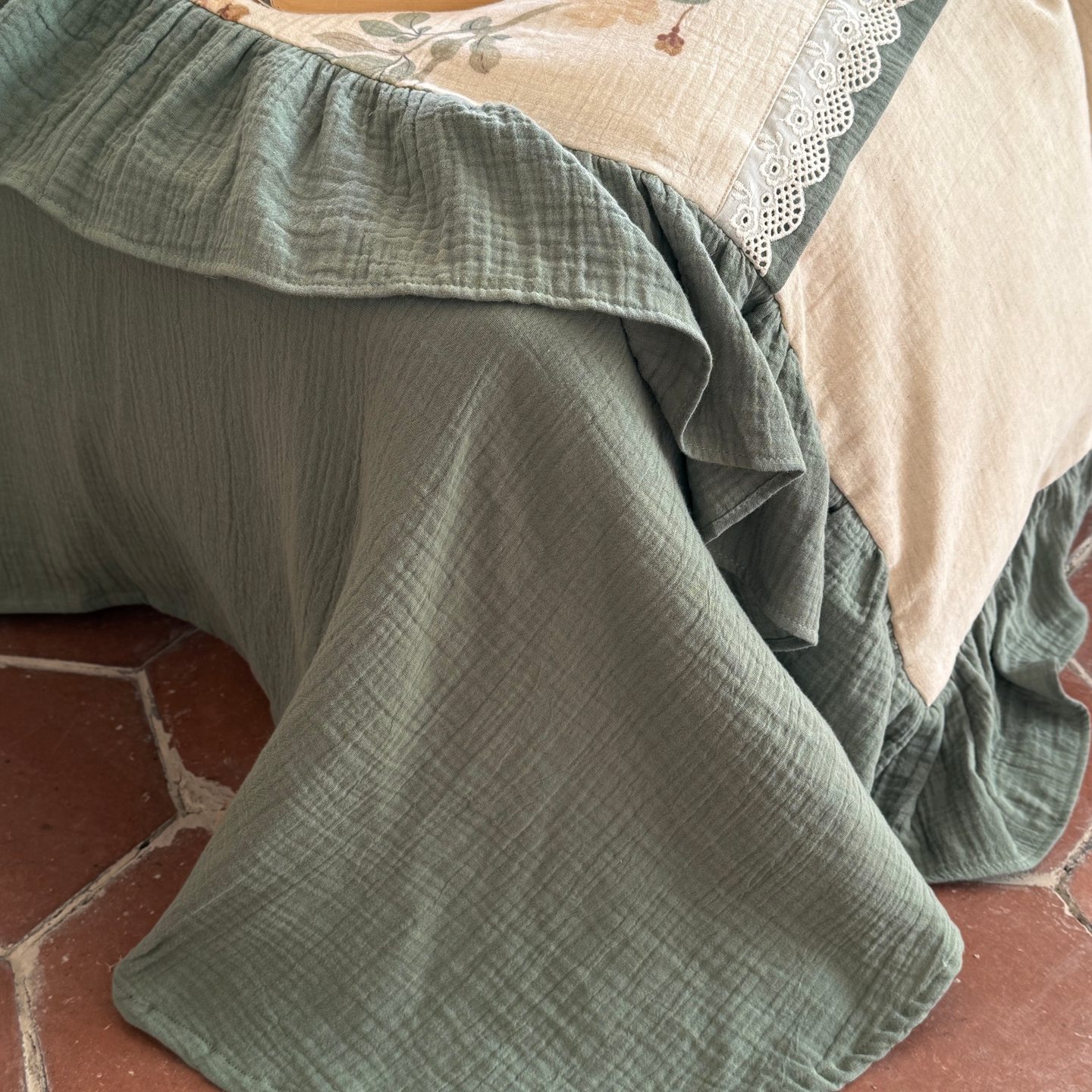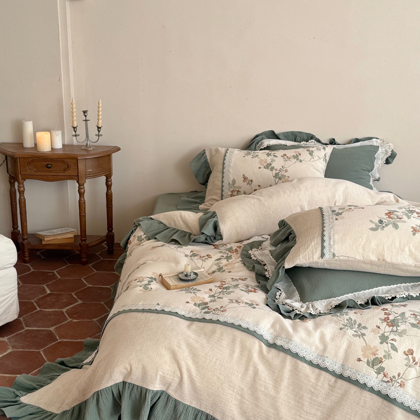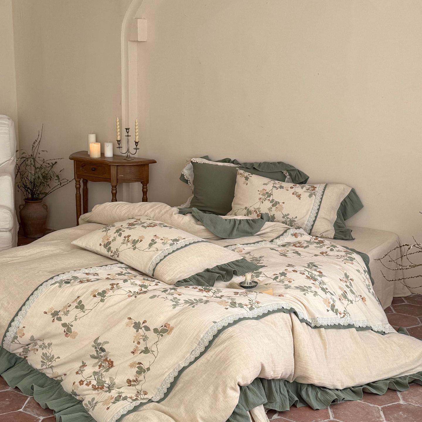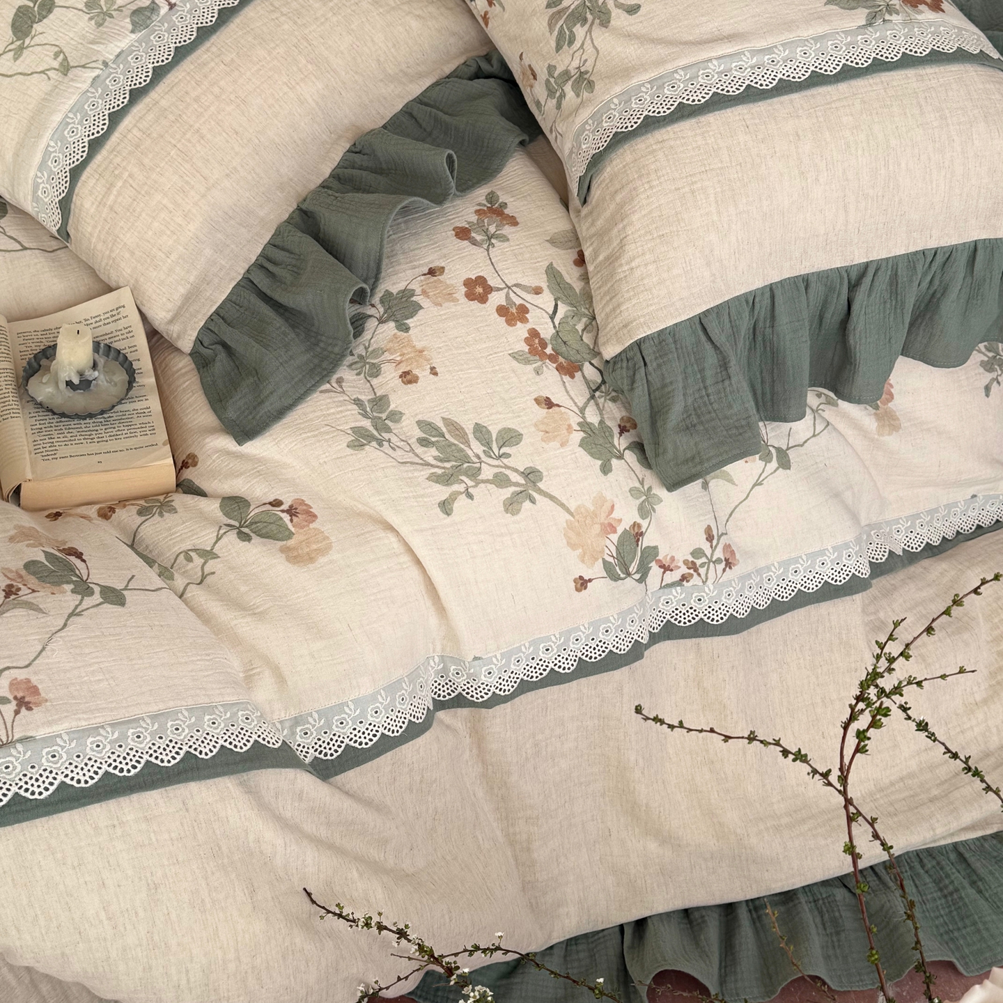 (总)佳汐蓝家纺 2026春夏新款棉麻皱皱双层纱四件套-古风铃岚 控价:卷后不低于398,古风铃岚