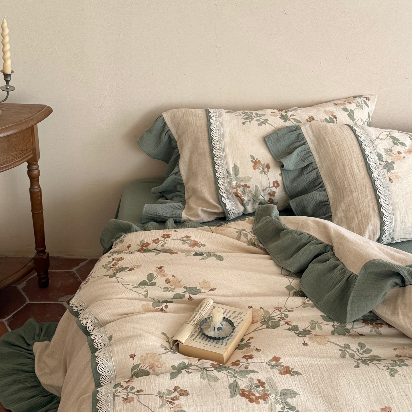 商品名称:(总)佳汐蓝家纺 2026春夏新款棉麻皱皱双层纱四件套-栀子茉莉 控价:卷后不低于398