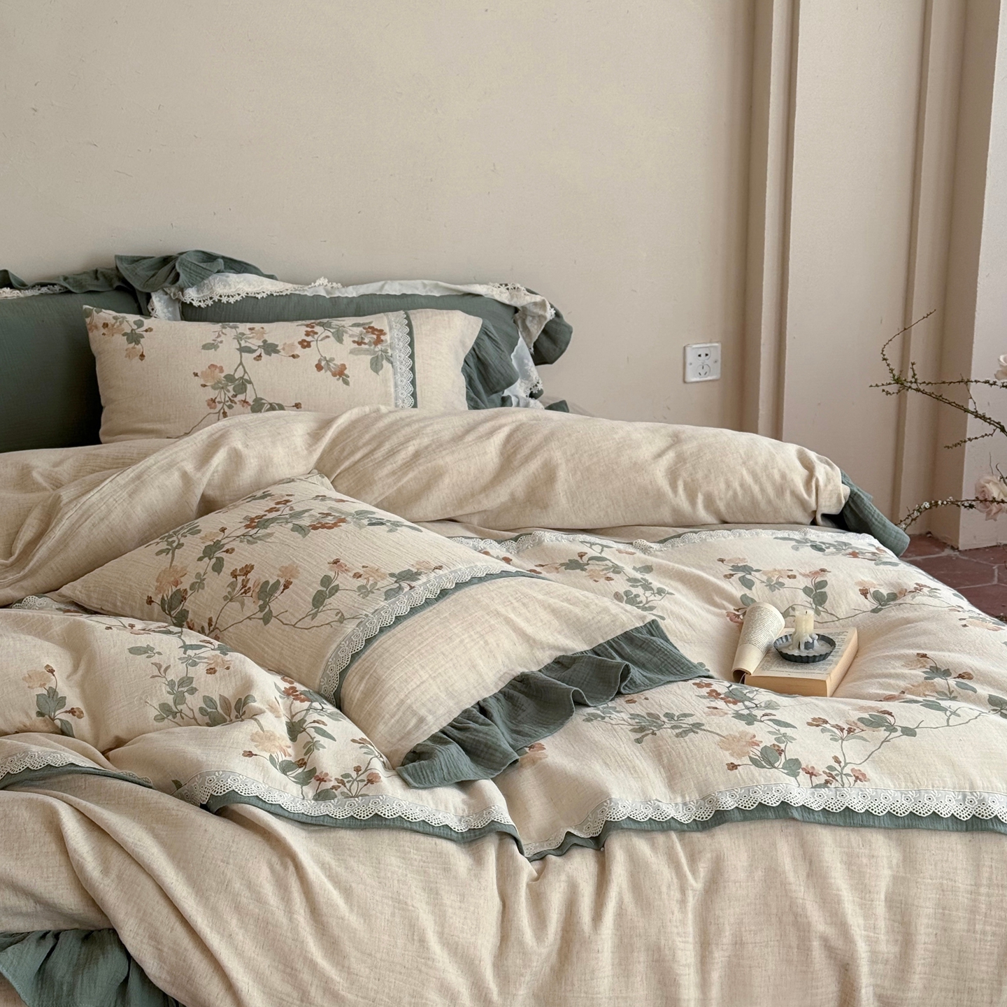 (总)佳汐蓝家纺 2026春夏新款棉麻皱皱双层纱四件套-栀子茉莉 控价:卷后不低于398