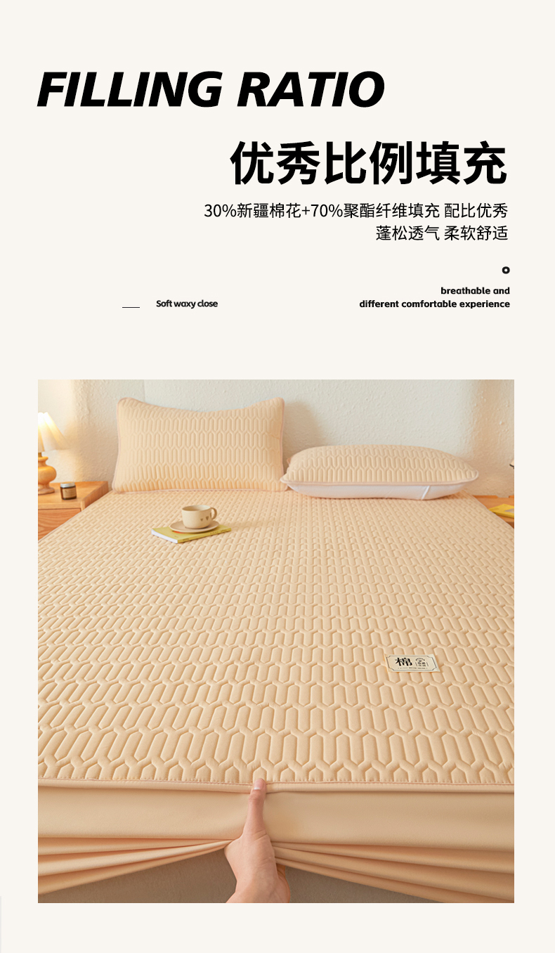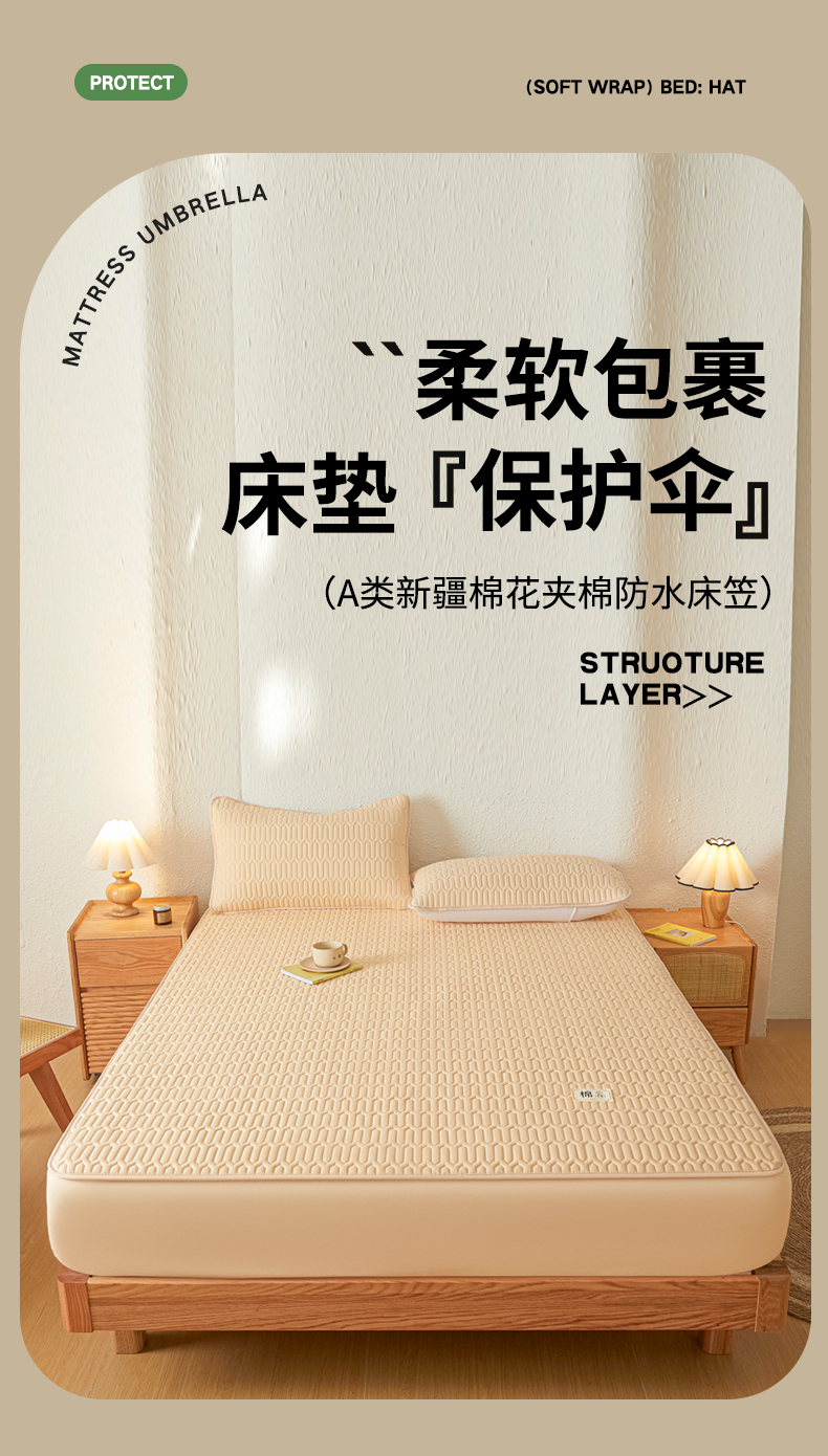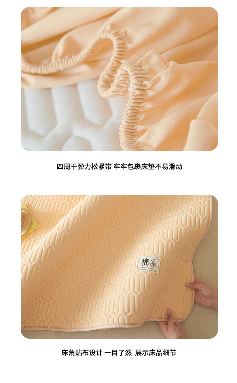 商品名称:女子家纺 2026新款新款A类新疆棉花夹棉防水单品床笠 小竹纹-卡其