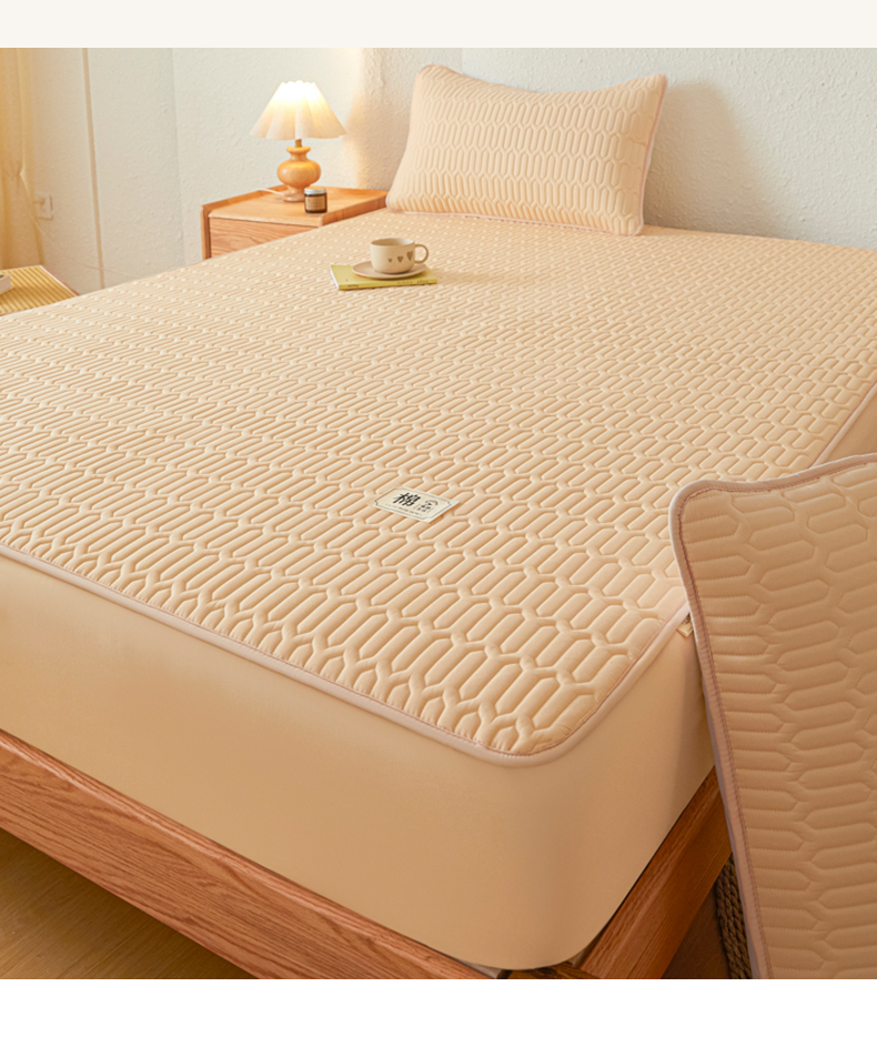 女子家纺 2026新款新款A类新疆棉花夹棉防水单品床笠 小竹纹-卡其
