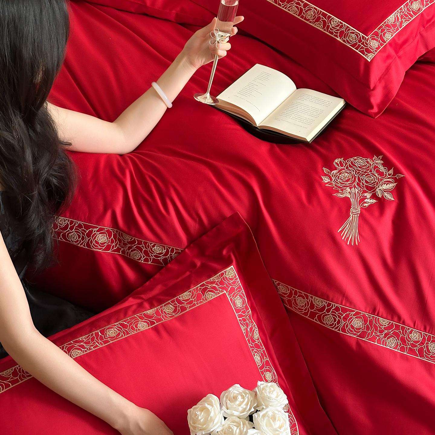 (总)曼布缇 2025新款长绒棉纯棉贴布绣四件套-逐梦(送抱枕)(会员减20,券后338/368/388起),逐梦-场景一,逐梦-场景二