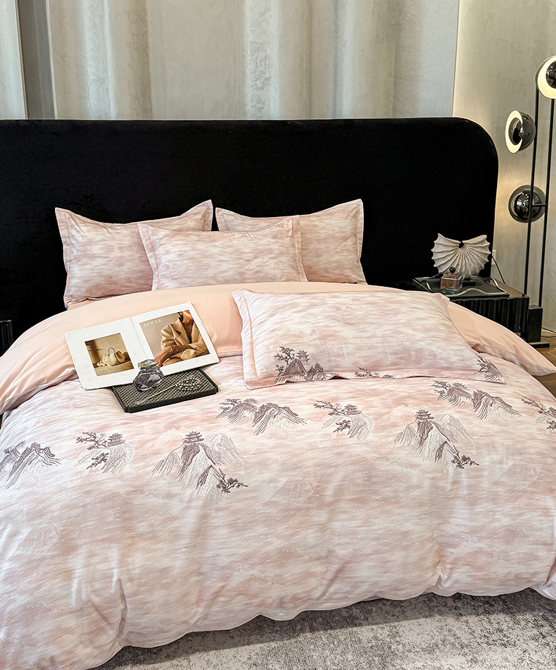 喜四方 2026新款100%全棉60支长绒棉数码印花四件套(控价不低于180) 锦绣山河-粉