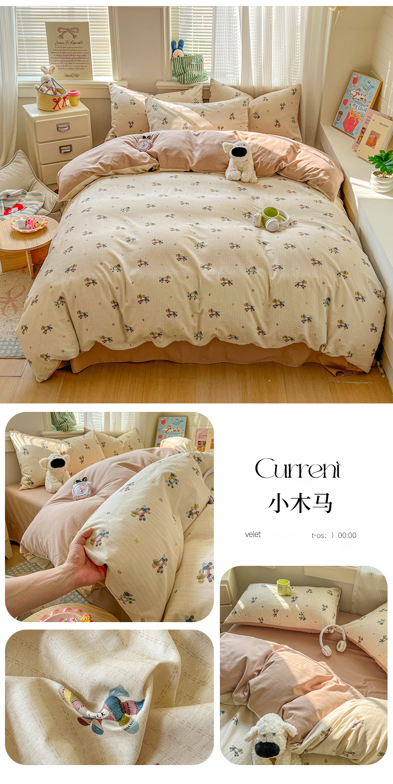当前位置: 91家纺网 > 商品网购 > 床品套件 > 四件套 > 全棉普通四件套 > 漫仙阁家纺 2026新款纯棉学生宿舍A版100%新疆棉B版古法水洗三件套全棉四件套小木马