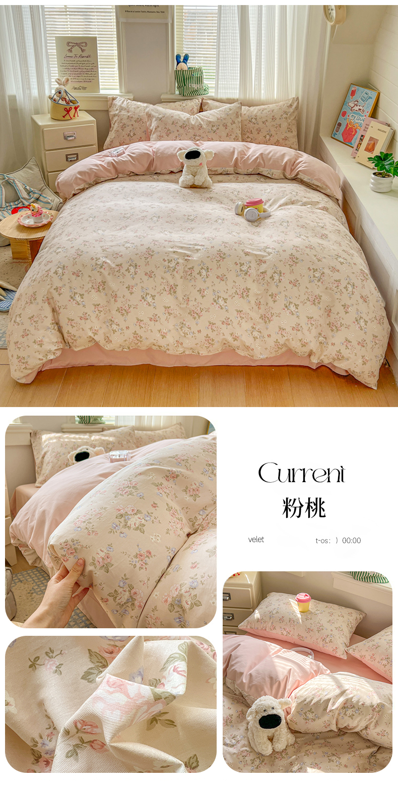 当前位置: 91家纺网 > 商品网购 > 床品套件 > 四件套 > 全棉普通四件套 > 漫仙阁家纺 2026新款纯棉学生宿舍A版100%新疆棉B版古法水洗三件套全棉四件套粉桃