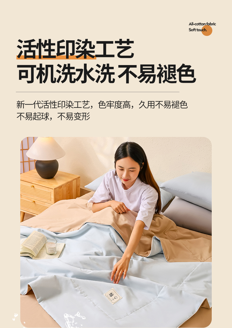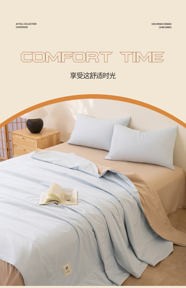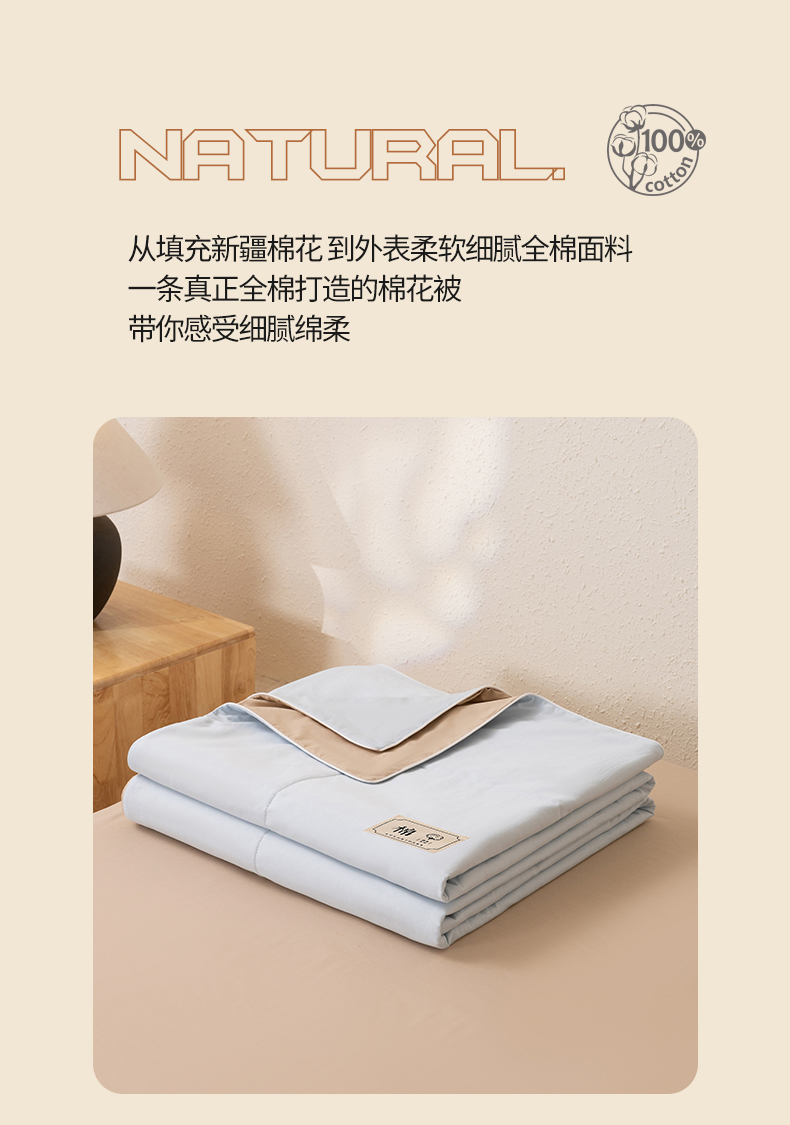 • 91家纺网 家纺一手货源 找家纺 盛凡家纺 2026新款A类133*72里外全棉100%棉花夏被四件套夏凉被空调被纯色被子被芯(包检测) 花青兰+奶咖