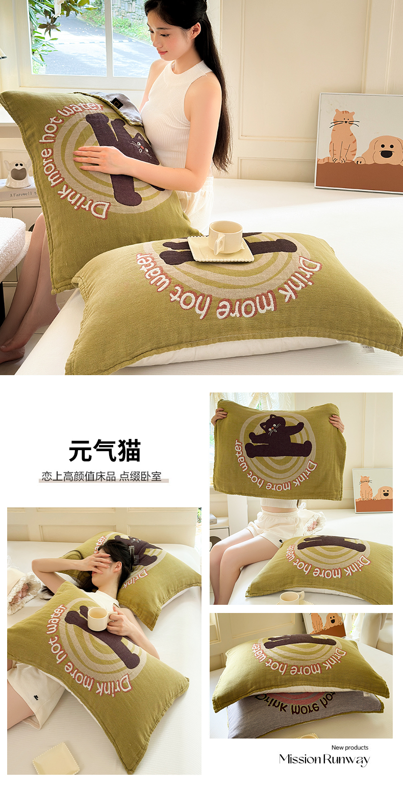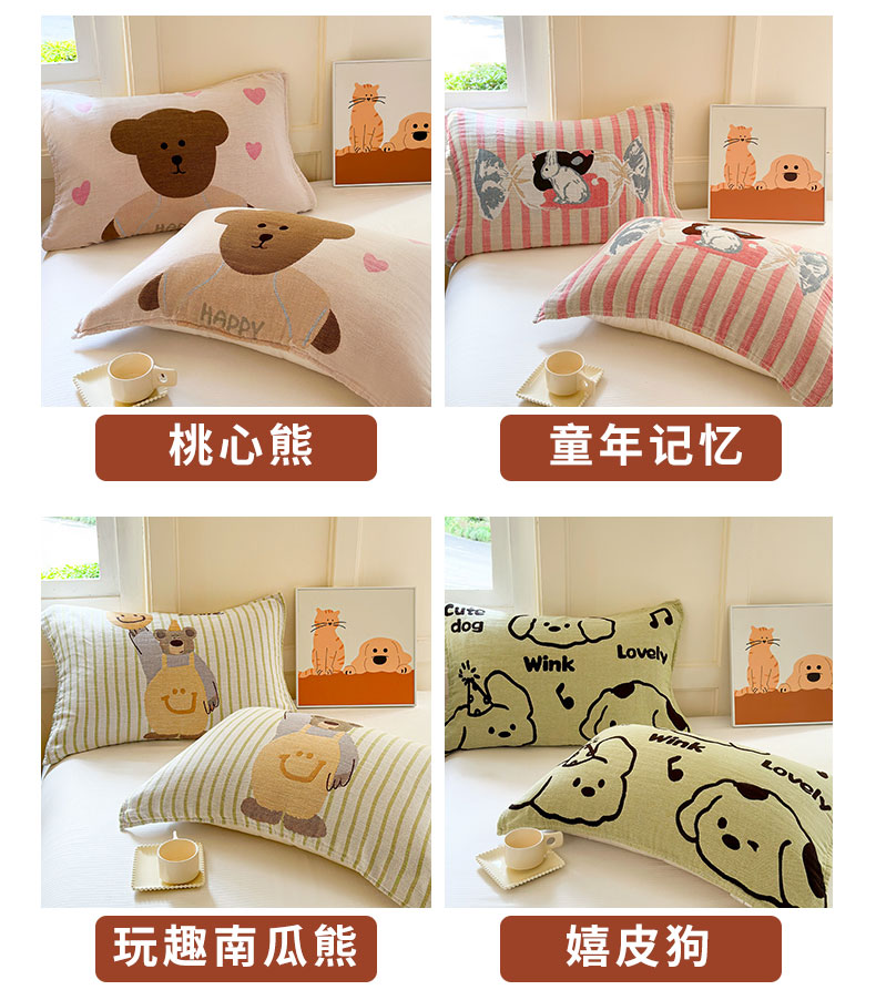 (总)朴尔家纺-毛巾被 2025新款全棉纯棉多柔AB版定位四层纱布枕巾单枕巾枕巾单件,粉红猫 52x75cm枕巾一对,狗狗巴士 52x75cm枕巾一对,咖啡时光 52x75cm枕巾一对,牛角甜包 52x75cm枕巾一对,桃心熊 52x75cm枕巾一对,童年记忆 52x75cm枕巾一对,玩趣南瓜熊 52x75cm枕巾一对,元气猫 52x75cm枕巾一对