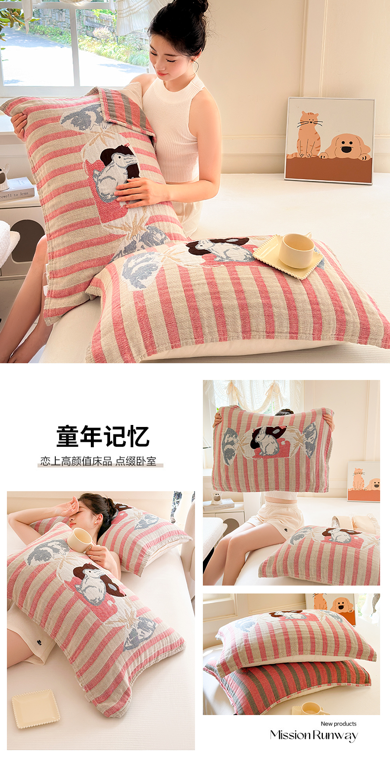 (总)朴尔家纺-毛巾被 2026新款多彩八层全棉纯棉加厚纱布枕巾,缤纷派对,彩虹糖果,彩色蓝条纹,粉黛花园,花花兔,活力少女,酷酷猫,栗子松鼠,摩登女郎,贪睡小白,西红柿猫,元气少女-粉,组合图(仅供展示不可下单)