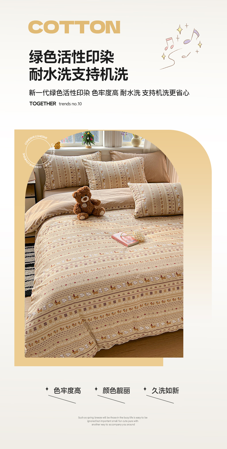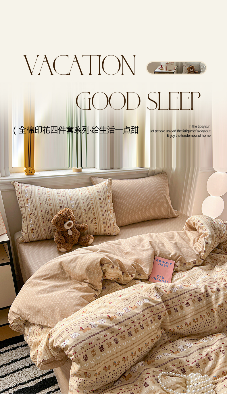 盛馨家纺 2026年开学季春夏新品小清新全棉学生三件套四件套床笠四件套跑量款 尼诺