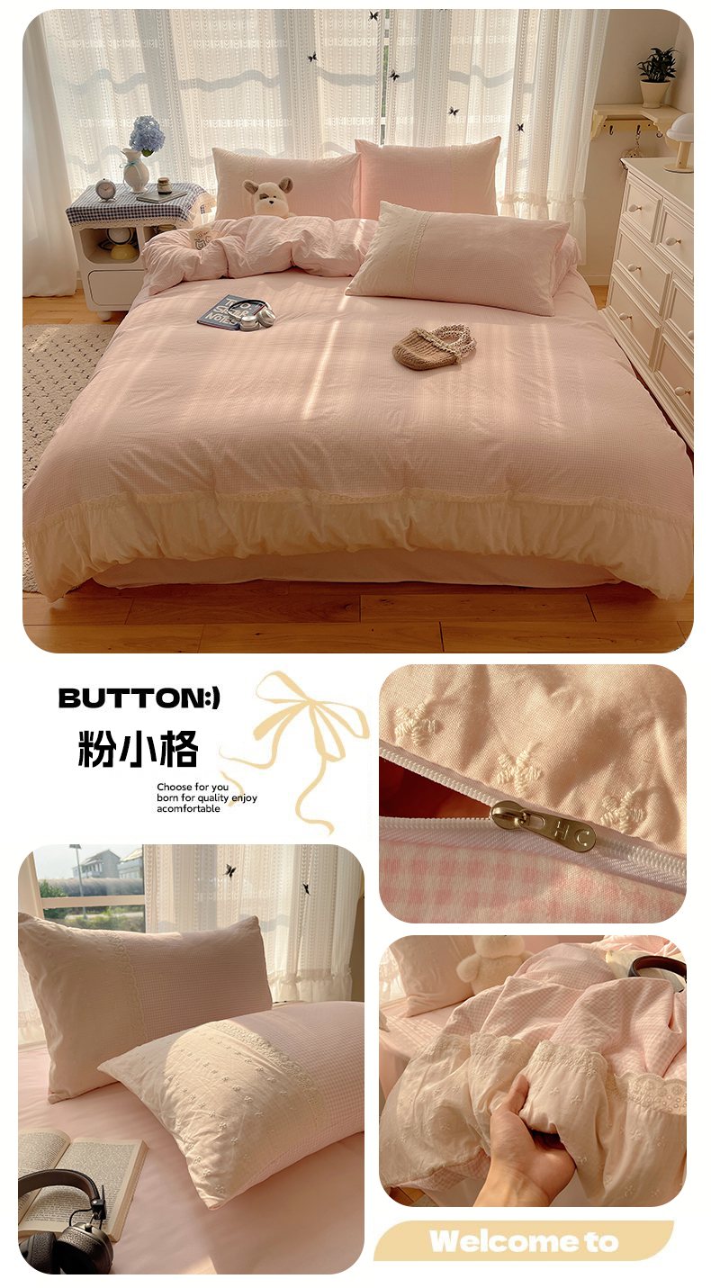 当前位置: 91家纺网 > 商品网购 > 床品套件 > 四件套 > 水洗棉四件套 > 韩巢家纺 2026新款少女心蕾丝花边款四件套 小花集【蕾丝花边款】