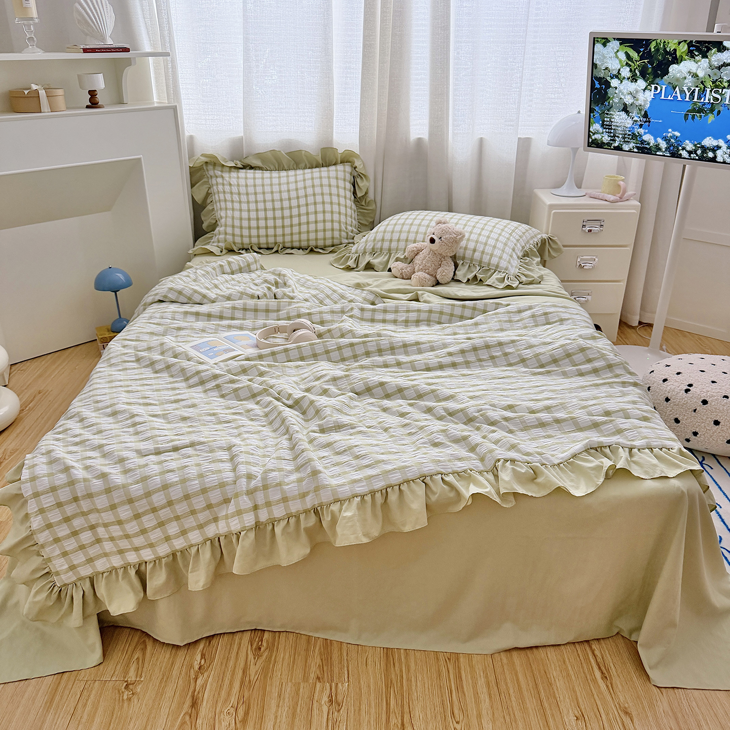 • 91家纺网 家纺一手货源 找家纺 (总)乐卧家居 2026新款韩系千禧梦核多巴胺美学少女感格纹褶皱款荷叶边夏被空调被,千禧-奶油蓝,千禧-复古绿,千禧-经典黑,千禧-摩卡咖,千禧-芍药粉,千禧-芋泥紫,组合图