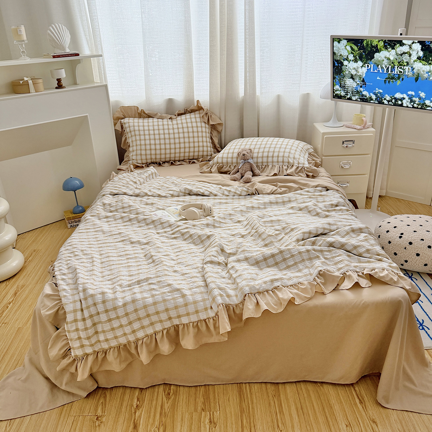 • 91家纺网 家纺一手货源 找家纺 乐卧家居 2026新款韩系千禧梦核多巴胺美学少女感格纹褶皱款荷叶边夏被空调被 千禧-芋泥紫