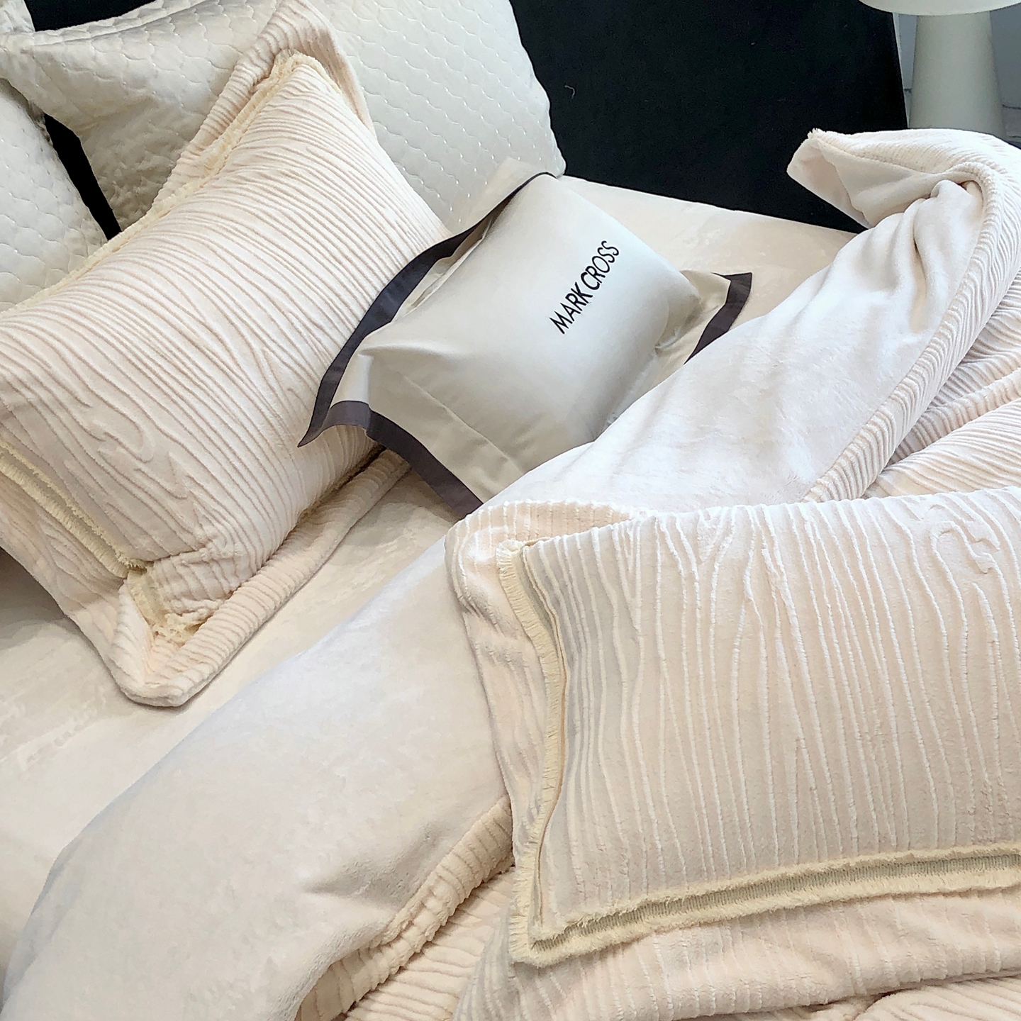 (总)佳汐蓝家纺 2026新款奢雅云柔立体浮雕流苏款四件套绒绒仙踪(标价为控价),绒绒仙踪-暮雪白,绒绒仙踪-曙光金,绒绒仙踪-星空紫