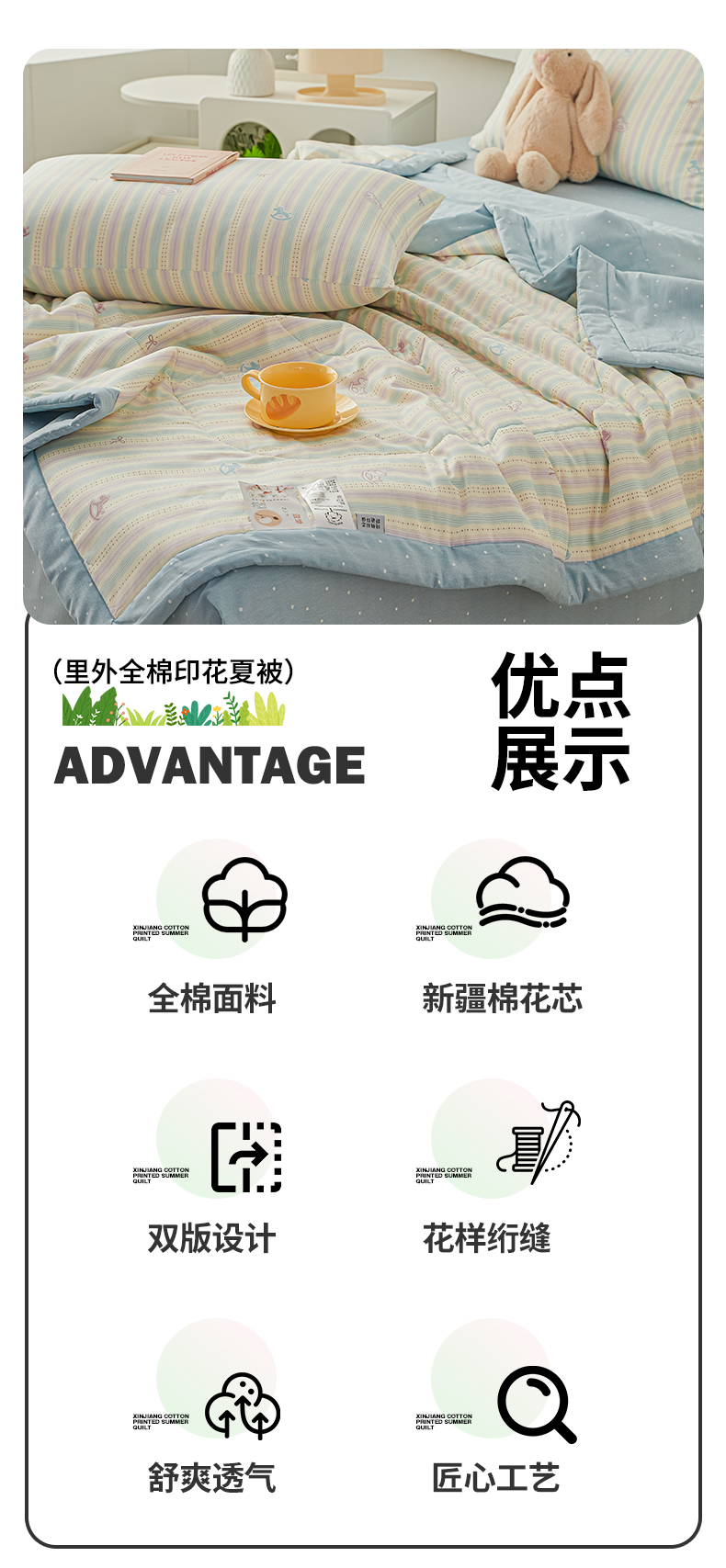 • 适用季节: 空调被/夏凉被