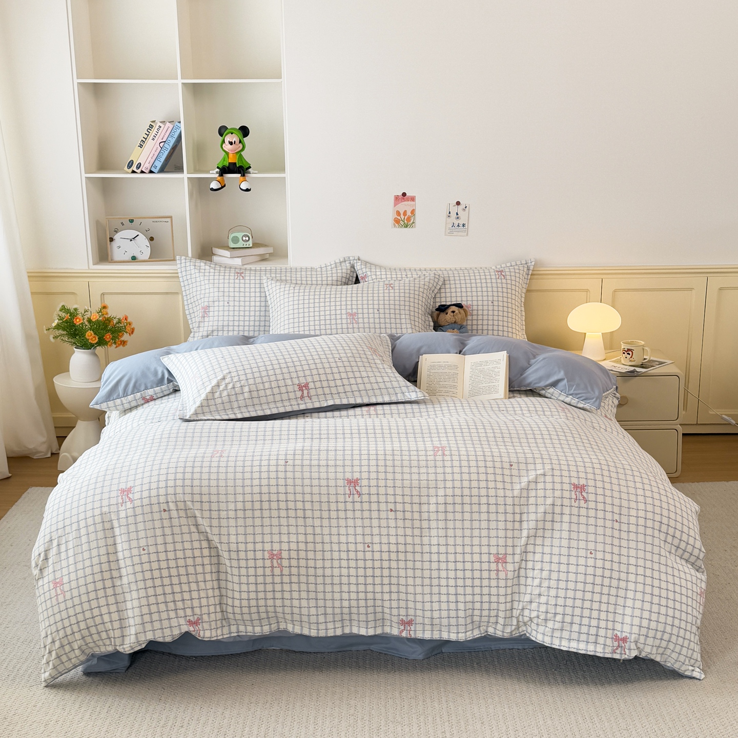 (总)梦纤绒 2025新款古法水洗棉小布袋四件套,高克重木棉云柔棉,半亩花田,啵啵熊,春山集,浮生若梦,复古红花,格子蝴蝶结,红樱桃,蝴蝶结点点,花间赋,灰咖小格,极简主义,快乐小狗,腊肠狗,蓝色幻蝶,浪漫主义,莫奈-紫,浅夕,清风絮语,晴天,森林物语,山茶花,甜心萌狗,兔小姐,闲趣花开,小布丁,小草莓,小萌象,组合图仅供展示