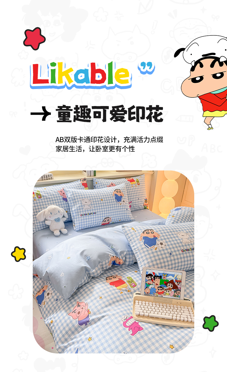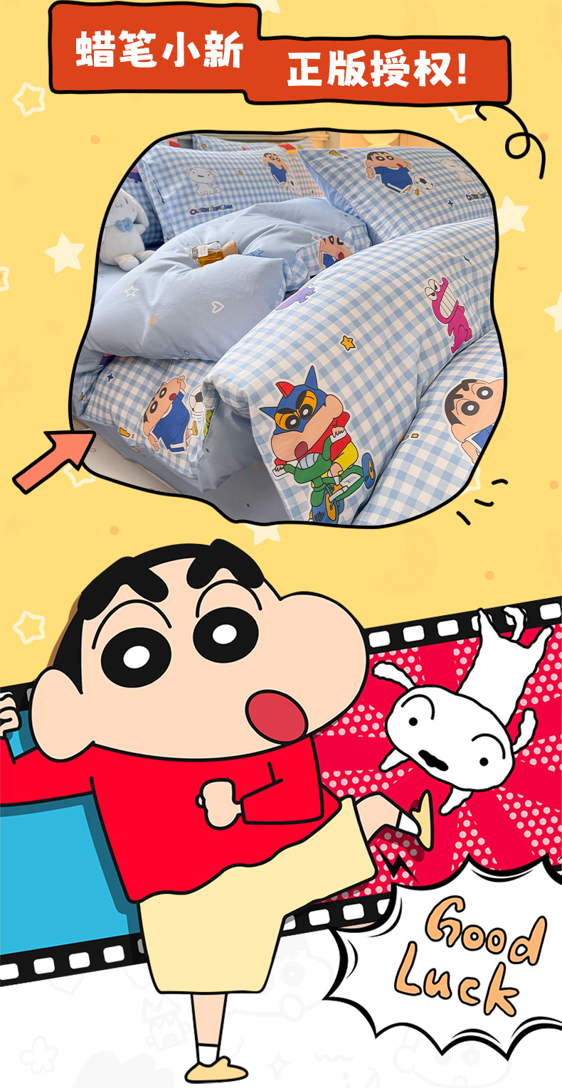 当前位置: 91家纺网 > 商品网购 > 床品套件 > 四件套 > 全棉普通四件套 > 博雅 2026新款蜡笔小新纯棉全棉四件套 小版-蓝格蜡笔小新