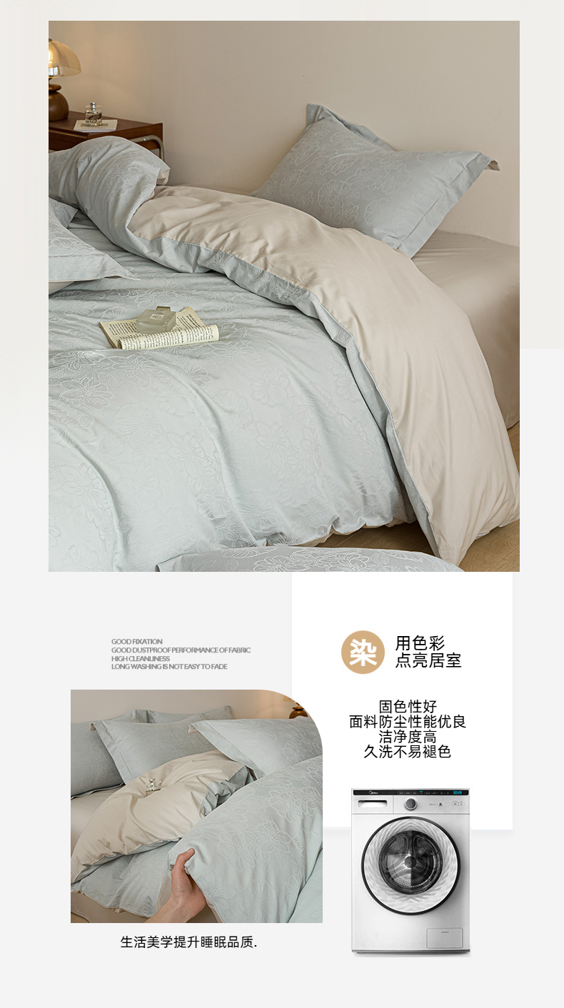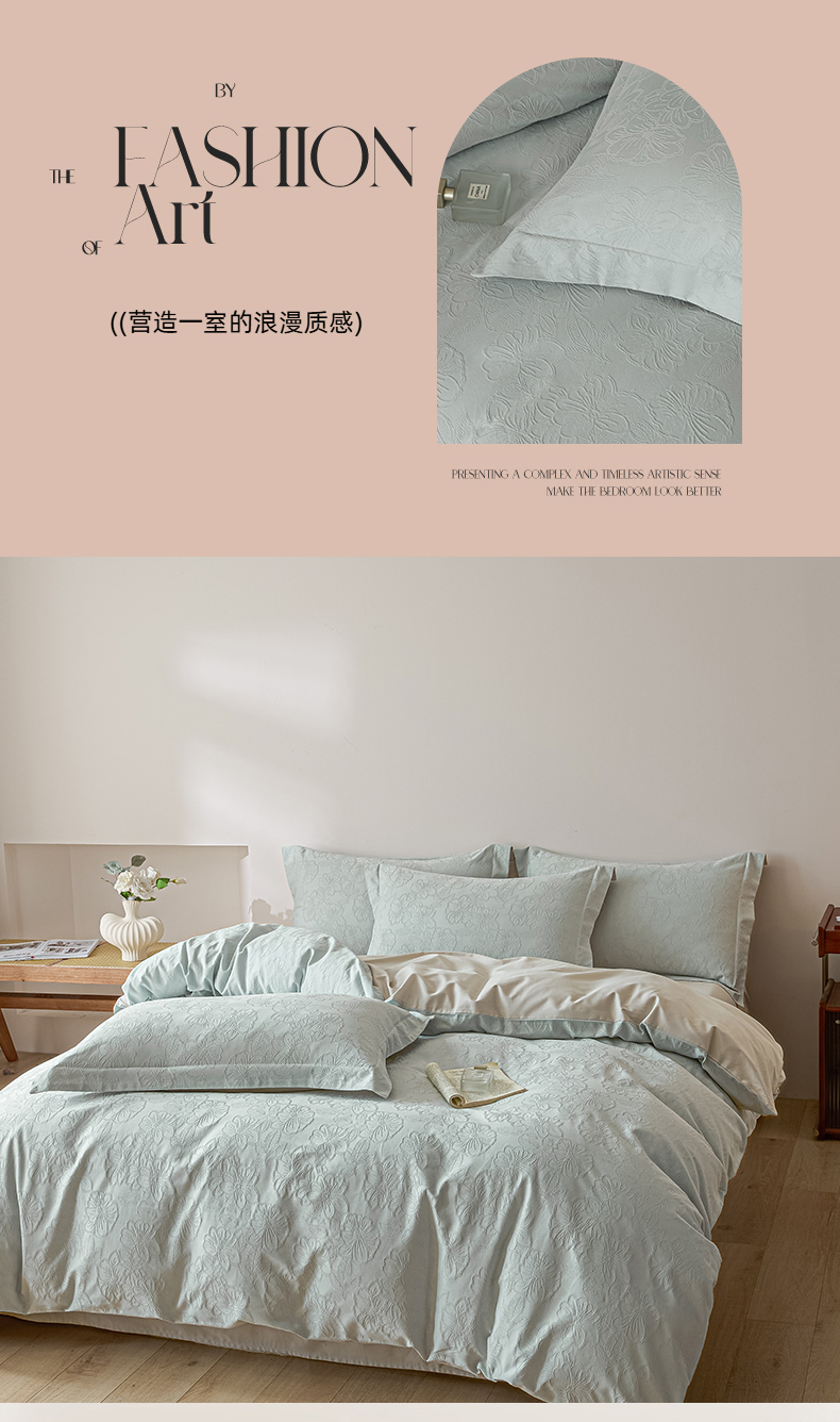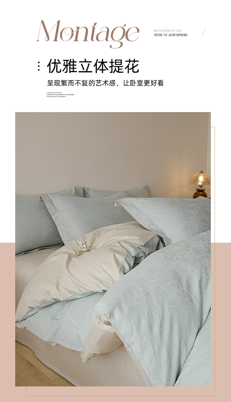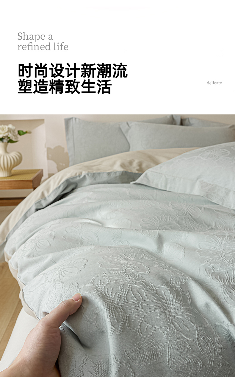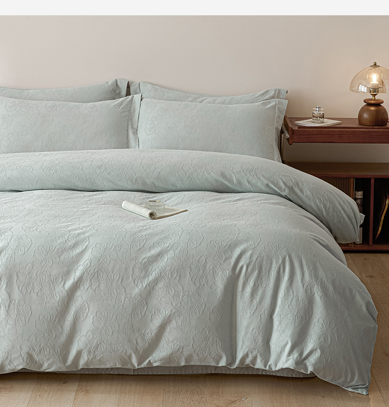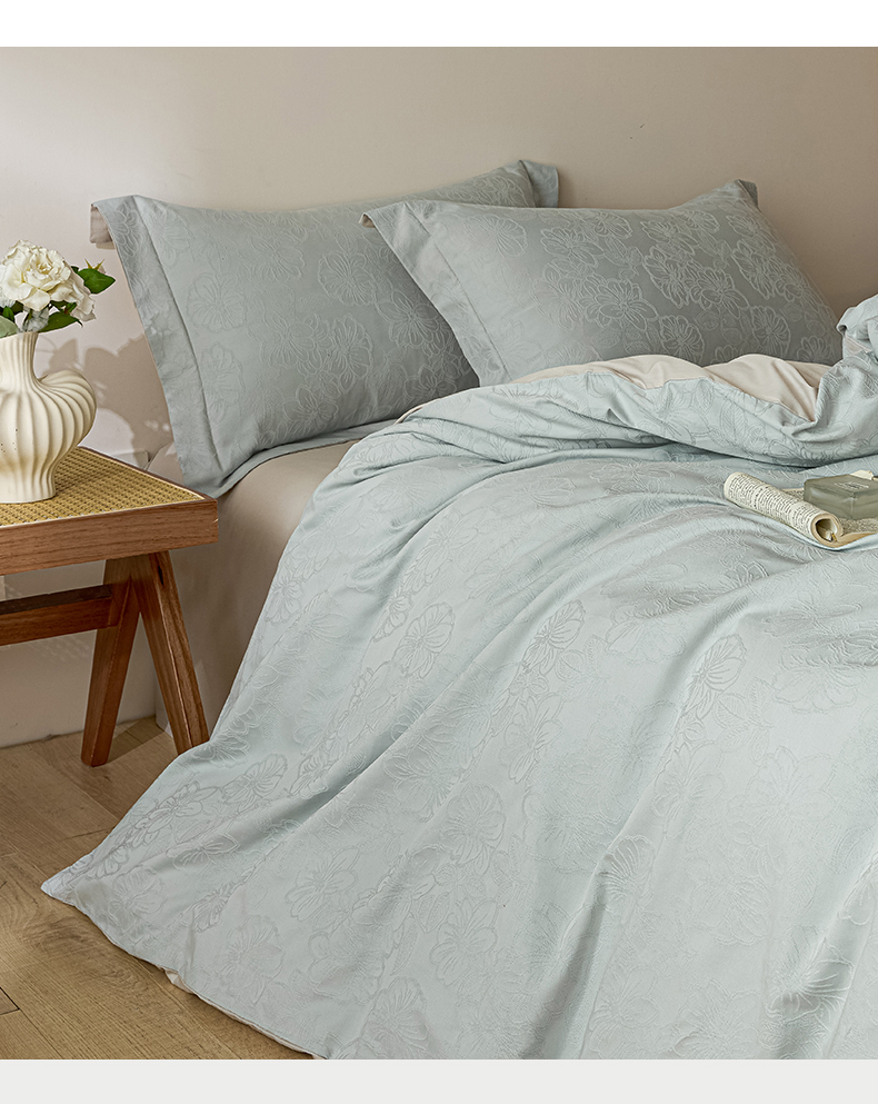 当前位置: 91家纺网 > 商品网购 > 床品套件 > 四件套 > 全棉普通四件套 > 禾时 2026春夏新品全棉立体浮雕提花双拼色四件套-繁花 北极兰-浅灰银