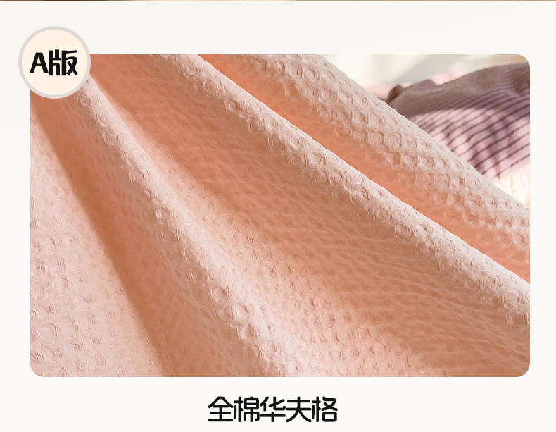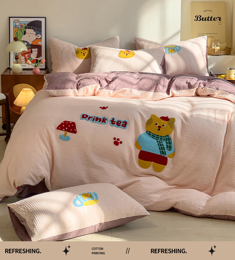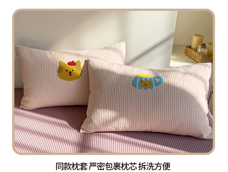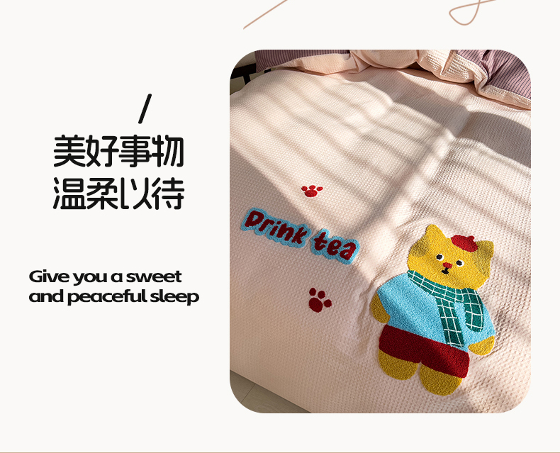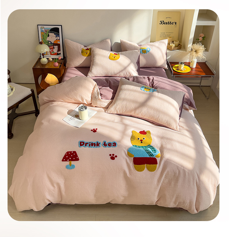 炫拼家纺 2026新款A类全棉色织华夫格卡通毛巾绣B版40支纯棉水洗棉四件套-乐邦系列 乐邦-梦想猫